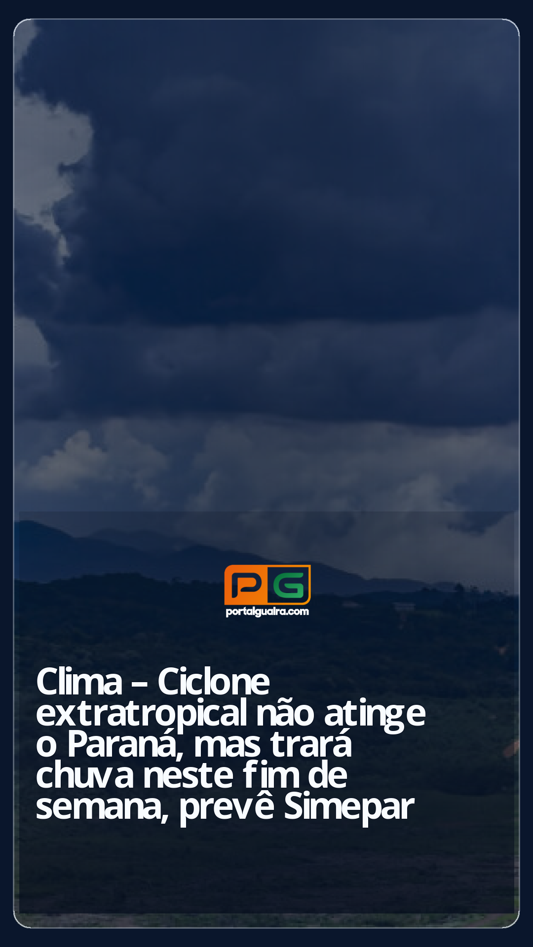 “Uma frente fria vai se formar no fim de semana ao sul do continente, entre o Rio Grande do Sul, o Uruguai e o Oceano Atlântico. Associado à frente fria, também teremos a formação de um ciclone extratropical. Nenhum destes fenômenos passará sobre o Paraná, mas impactam o tempo já a partir desta quinta-feira”, explica Reinaldo Kneib, meteorologista do Simepar.
