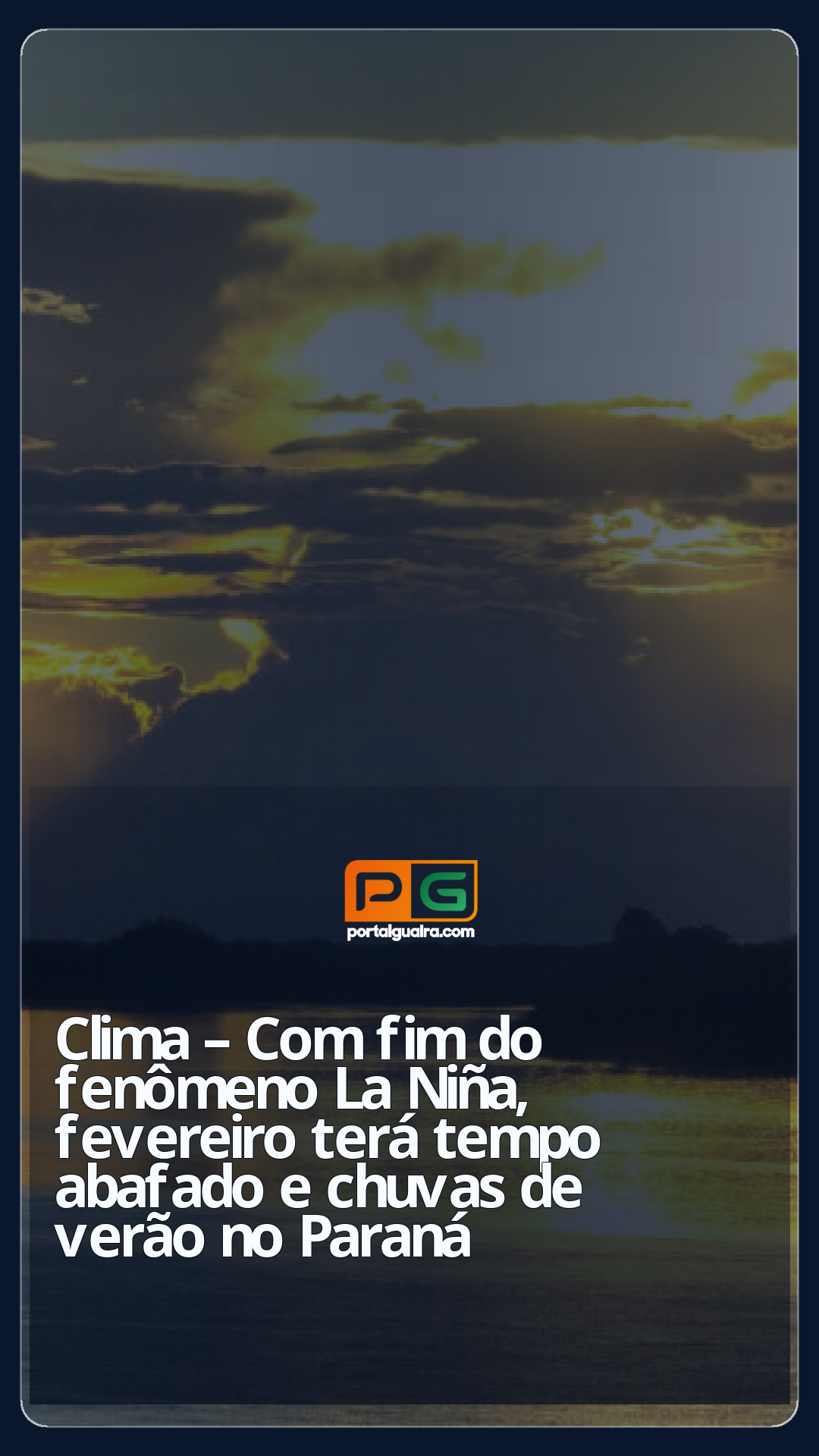 Entre janeiro e fevereiro, o volume de chuvas fica um pouco menor historicamente no Paraná. As temperaturas também ficam, em média, ligeiramente mais baixas, mas o calor segue presente. De acordo com o Sistema de Tecnologia e Monitoramento Ambiental do Paraná (Simepar), fevereiro de 2026 ainda terá tempo abafado e pancadas de chuva típicas de verão: rápidas, entre a tarde e a noite. O fenômeno La Niña sai de cena, trazendo mais regularidade para o clima.