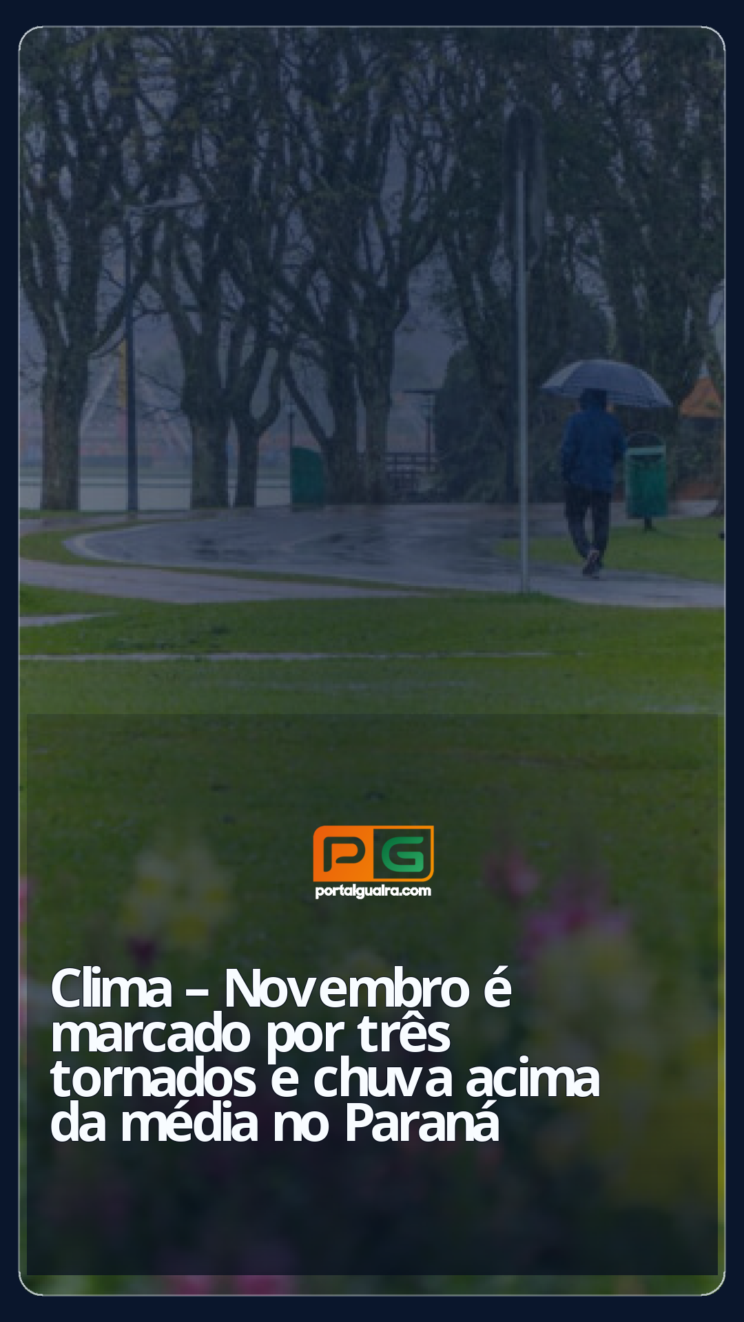 O balanço dos dados consolidados das estações meteorológicas do Sistema de Tecnologia e Monitoramento Ambiental do Paraná (Simepar) em novembro de 2025 aponta que, na maior parte do Estado, as temperaturas ficaram dentro ou abaixo da média histórica para o período. Já o volume acumulado de chuvas ficou dentro ou acima da média para o mês em quase todo o Paraná. O mês foi marcado pela passagem de três tornados e por tempestades típicas de primavera, com muita ocorrência de granizo.