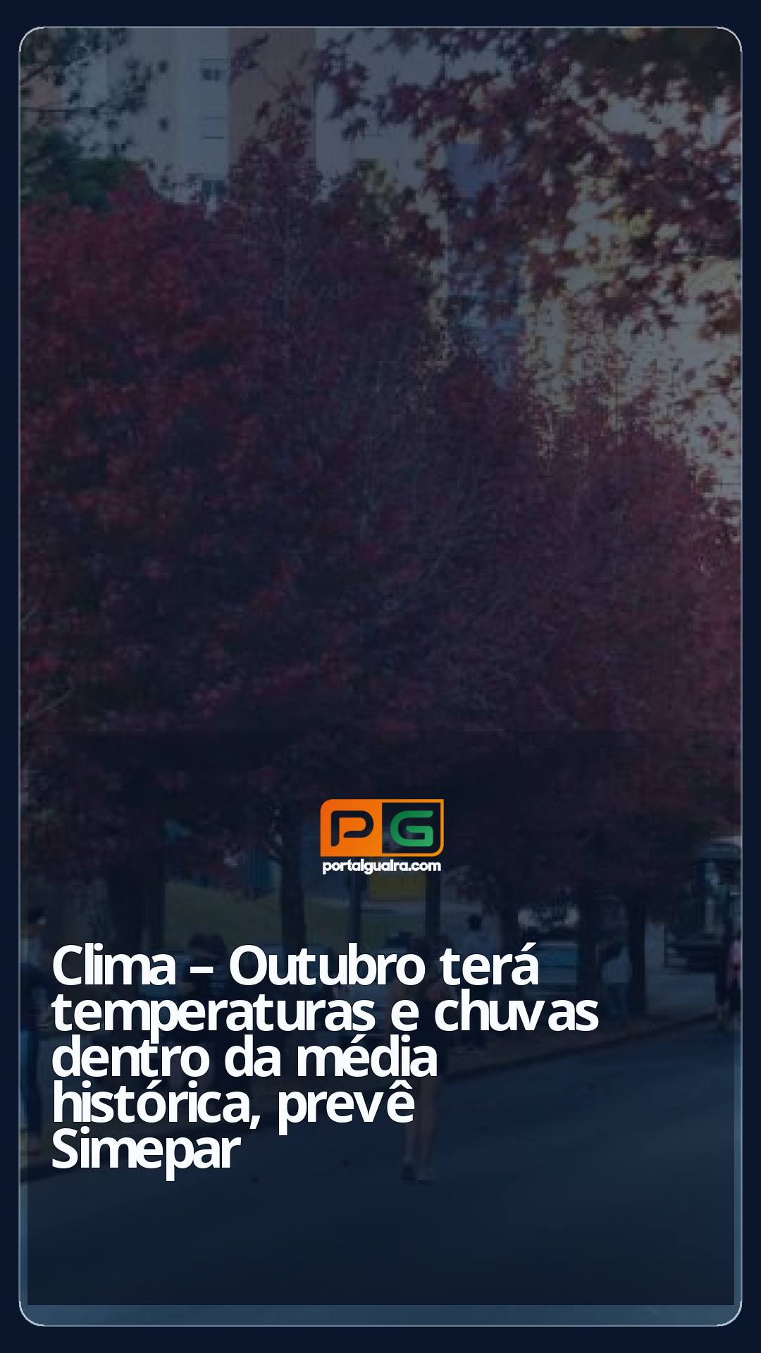Já na segunda quinzena de outubro, há previsão de predomínio de sol e temperaturas mais elevadas, que podem favorecer pancadas de chuva e trovoadas isoladas no período da tarde. Não é descartada a possibilidade de ondas de calor, com temperaturas mais elevadas durante períodos mais longos, no Norte e no Noroeste do Paraná.