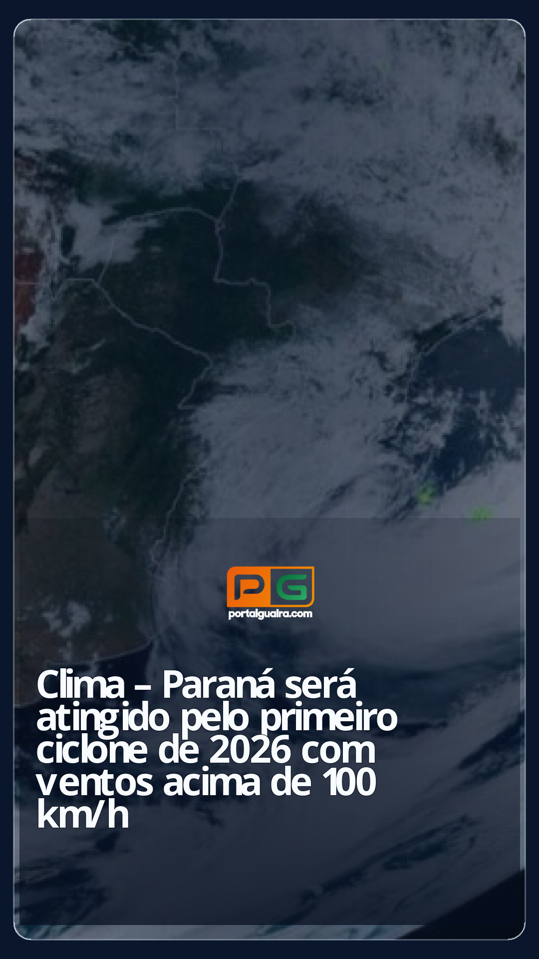 O primeiro ciclone extratropical de 2026 deve se formar a partir de sexta-feira (9) e se consolidar no sábado (10), passando pelo Paraná. Os ventos do fenômenos devem chegar a 100 km/h.