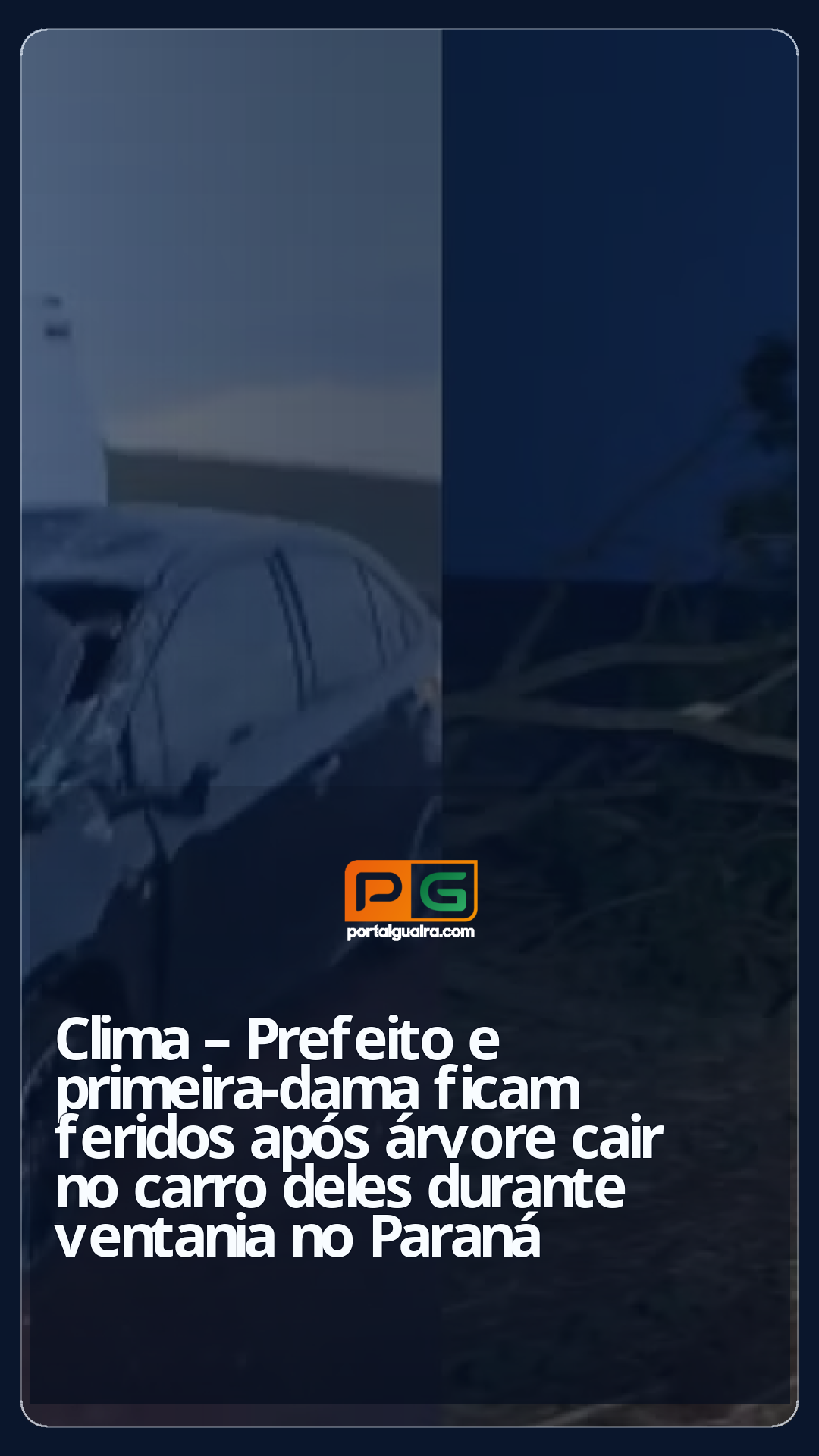 O prefeito de Ivatuba, no norte do Paraná, Varlei Vecezi (Republicanos), a primeira-dama Luciane Vercezi, de 42 anos, e a filha deles, de 12, ficaram feridos após uma árvore cair em cima do carro em que eles estavam. O caso aconteceu na noite de sexta-feira (17) enquanto eles passavam pela quilômetro 15 da rodovia PR-551, entre Ivatuba e Floresta.