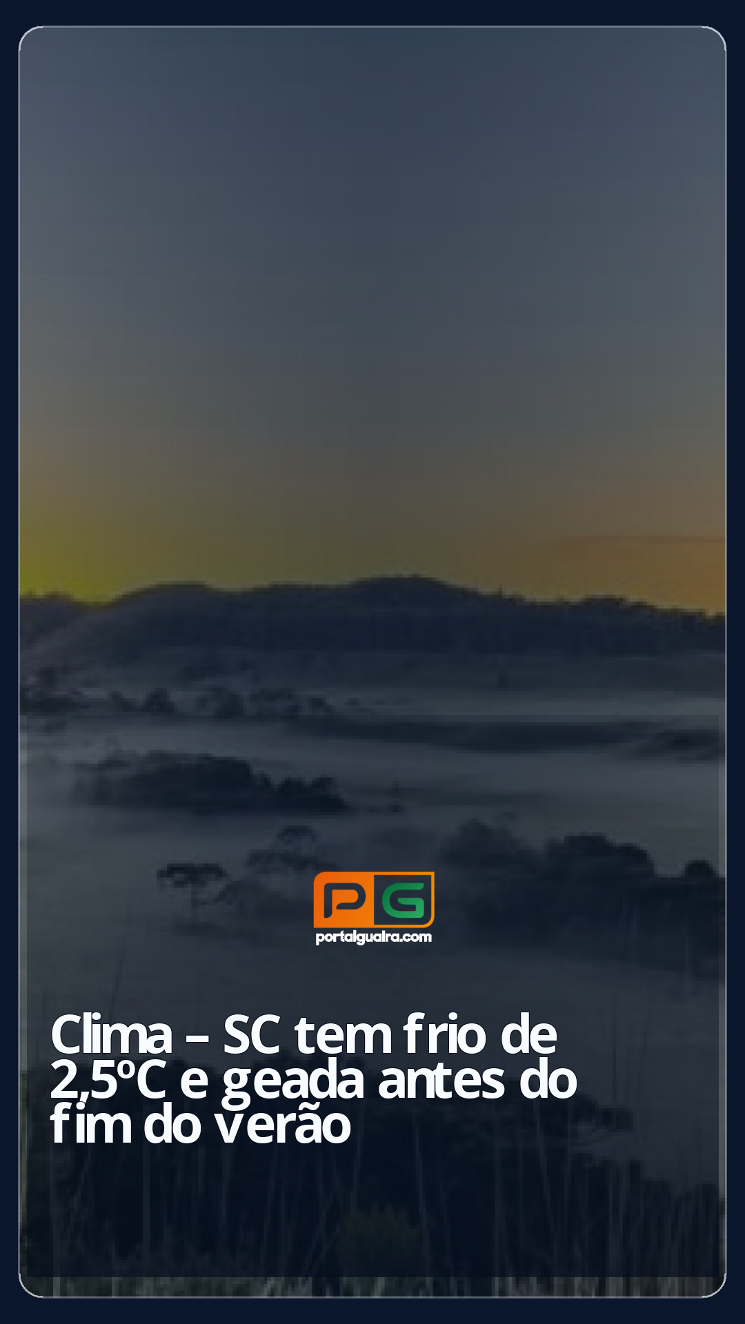A quatro dias do fim do verão, Santa Catarina amanheceu gelada neste domingo (16). Os termômetros chegaram a marcar 2,5ºC na região serrana, conhecida pelo turismo de inverno. Também houve geada (vídeo acima).