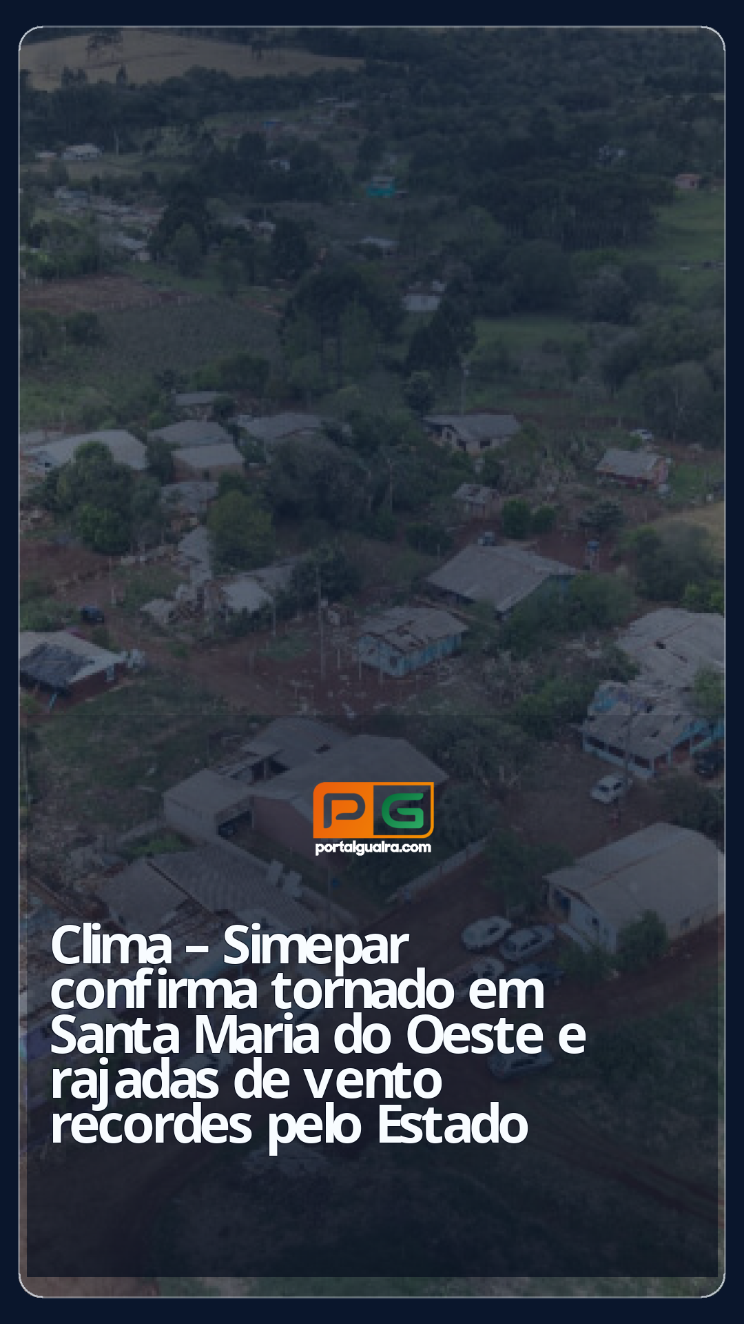 A frente fria que atravessou vários estados brasileiros entre domingo e segunda-feira (21 e 22) causou rajadas de vento históricas. Após análise das imagens registradas pela prefeitura e pela Polícia Militar do Paraná (PMPR) no município de Santa Maria do Oeste, região Central do Paraná, a equipe do Simepar (Sistema de Tecnologia e Monitoramento Ambiental do Paraná) concluiu que a causa da destruição em alguns pontos da cidade foi a passagem de um tornado categoria F1.