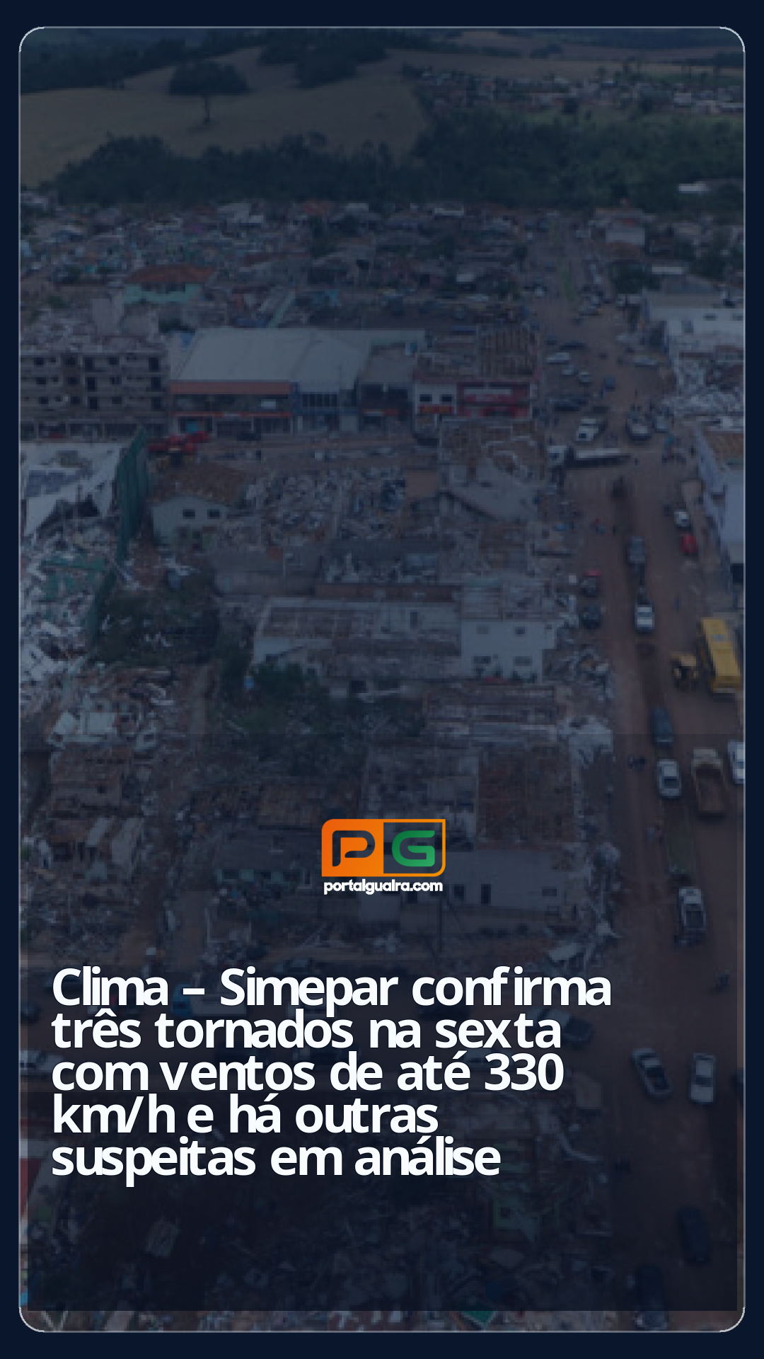 O Sistema de Tecnologia e Monitoramento Ambiental do Paraná (Simepar) confirmou nesta segunda-feira (10) a ocorrência de mais dois tornados no interior do Paraná durante as tempestades da noite de sexta-feira (07), além de finalizar a classificação do tornado que já havia sido confirmado no município de Rio Bonito do Iguaçu. Os outros tornados aconteceram em Turvo e Guarapuava.