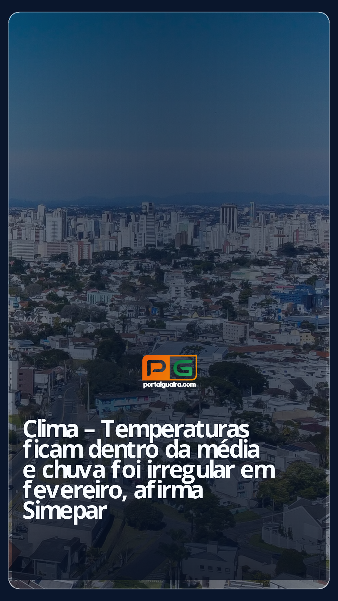 Fevereiro foi um mês típico de verão no Paraná. As temperaturas ficaram dentro da média em quase todo o estado – acima da média em apenas seis cidades. Já a chuva foi irregular, muito acima da média em algumas estações meteorológicas, e muito abaixo da média em outras. Os dados consolidados do mês foram analisados na segunda-feira (02) pelo Sistema de Tecnologia e Monitoramento Ambiental do Paraná (Simepar).