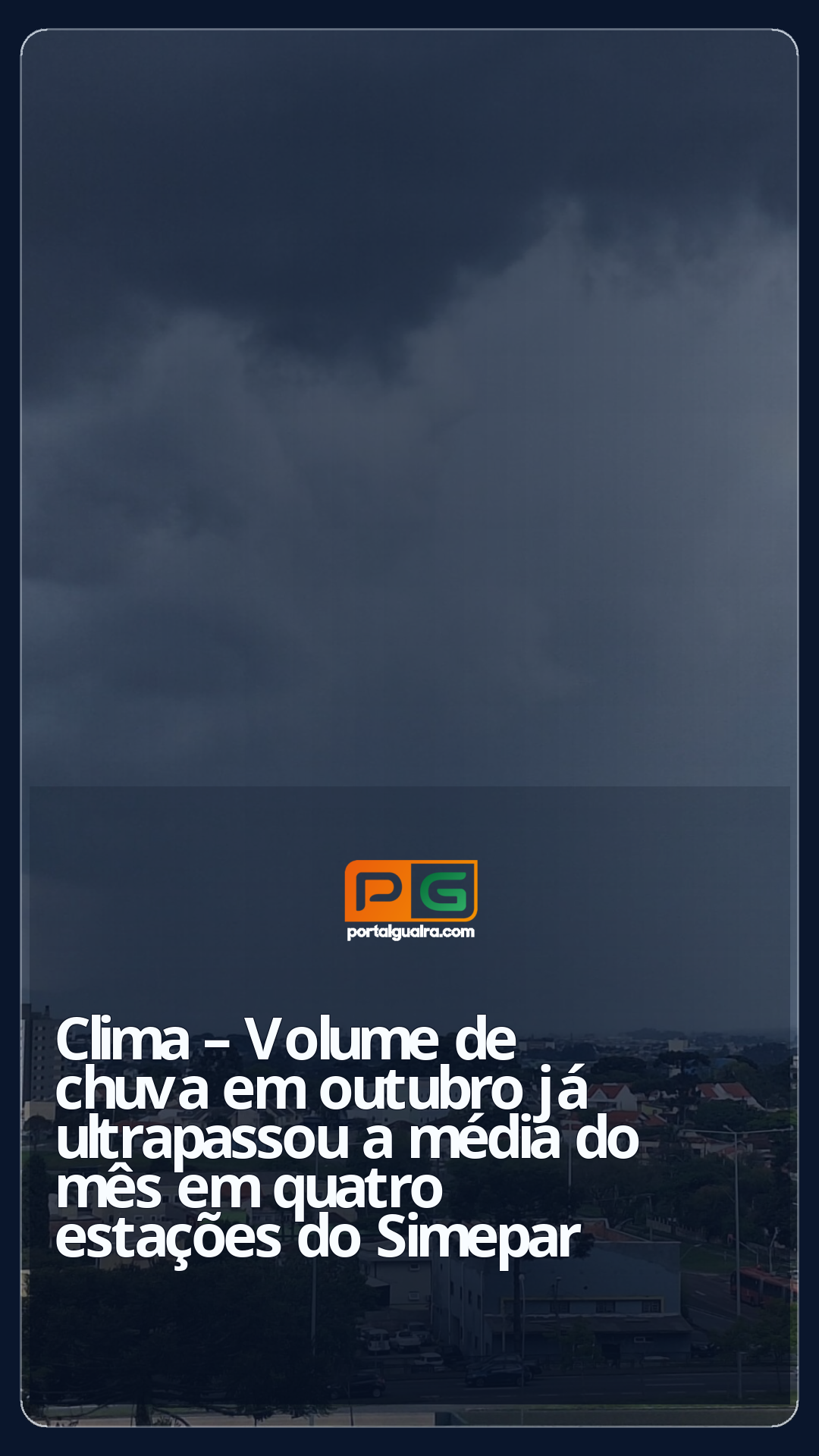 A primavera é uma estação que tem como característica a maior presença de tempestades, e as chuvas no Paraná têm chamado a atenção neste mês de outubro. Em quatro estações meteorológicas do Sistema de Tecnologia e Monitoramento Ambiental do Paraná (Simepar) a média histórica de chuvas para o mês já foi atingida na segunda-feira (20).