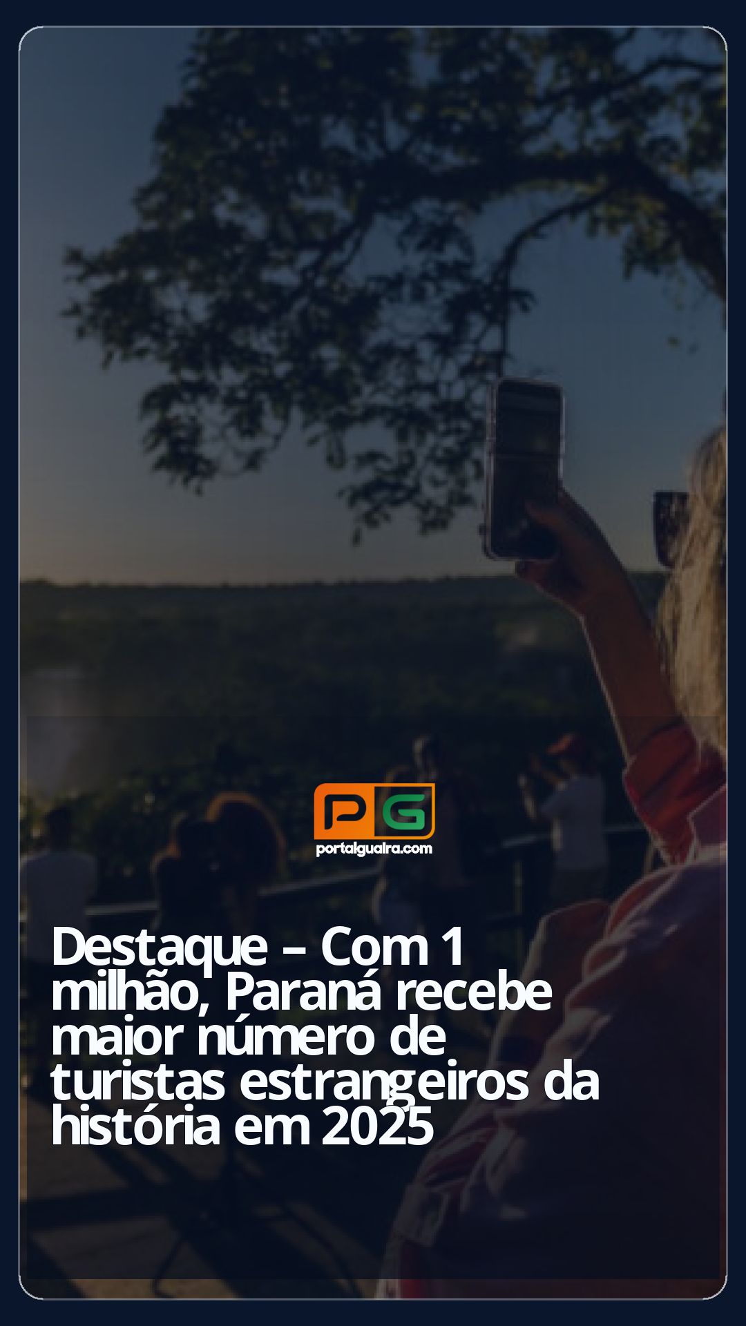 O Paraná registrou o maior número de turistas internacionais da história em 2025: 1.064.416 pessoas. Os dados foram divulgados pela Embratur e Ministério do Turismo, com dados da Polícia Federal, na terça-feira (6). O número é 5,4% superior ao maior registro até então, em 2019 (1.006.752), e 16,6% maior que os 912.255 turistas de 2024.