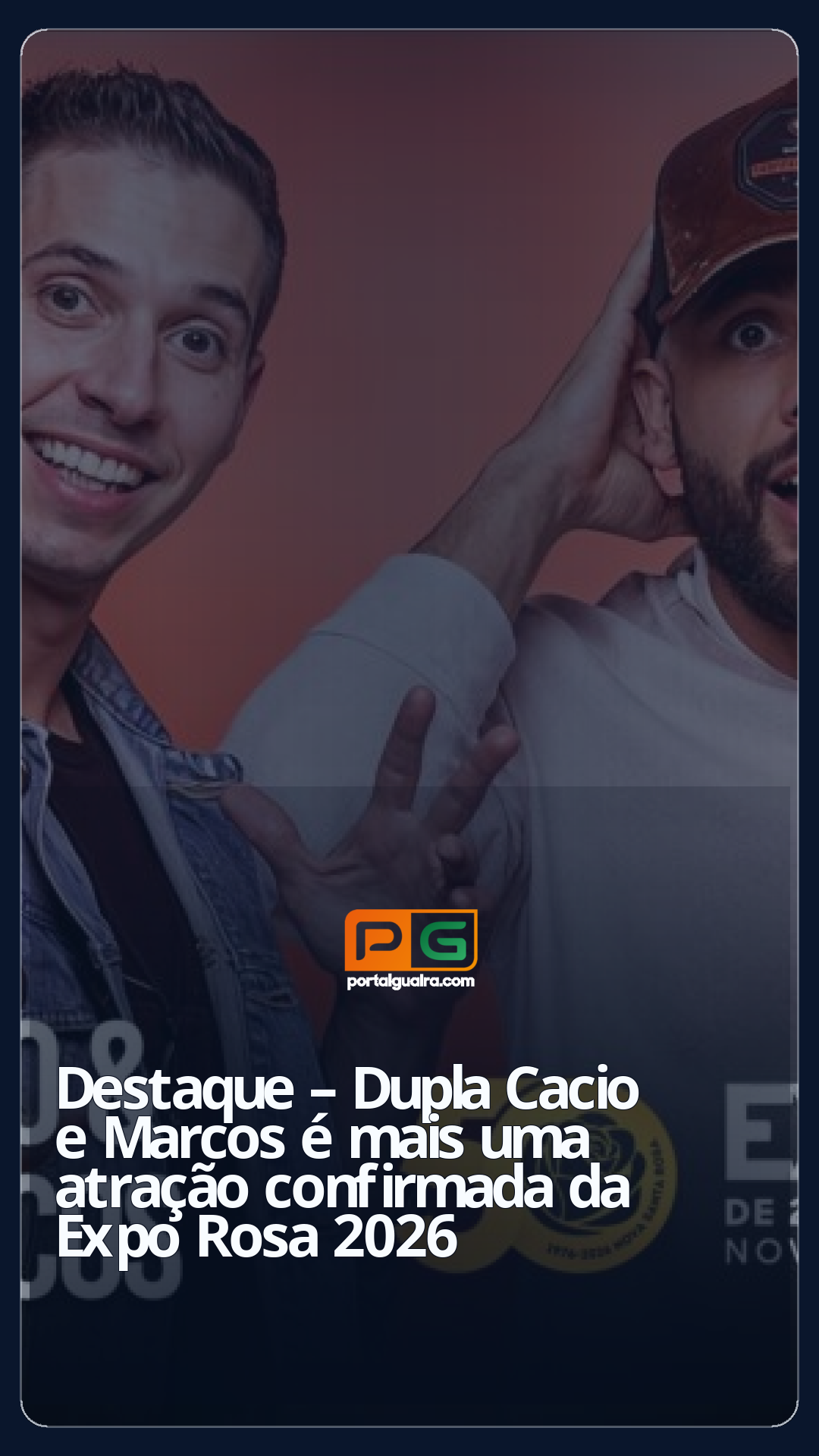 A Comissão Central Organizadora (CCO) da Expo Rosa 2026 anunciou mais uma atração que fará parte da programação de shows da feira. No domingo, dia 26 de abril, a partir das 19h, sobe ao palco a dupla Cacio e Marcos, conhecidos como os “reis do funknejo”.