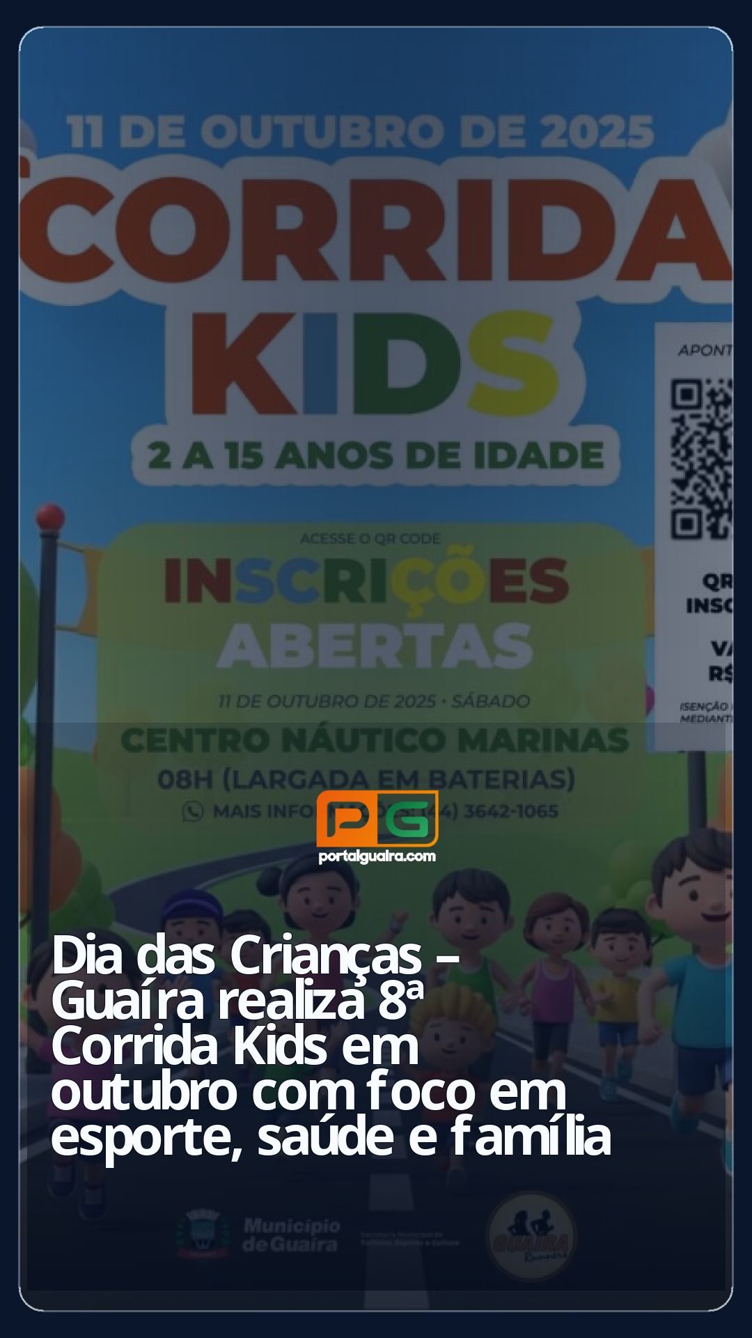 O Município de Guaíra por intermédio da Diretoria de Esportes da SEMTEC – Secretaria Municipal de Turismo, Esporte e Cultura promove no dia 11 de outubro de 2025, no período da manhã, a 8ª Corrida Kids, no Centro Náutico Marinas.