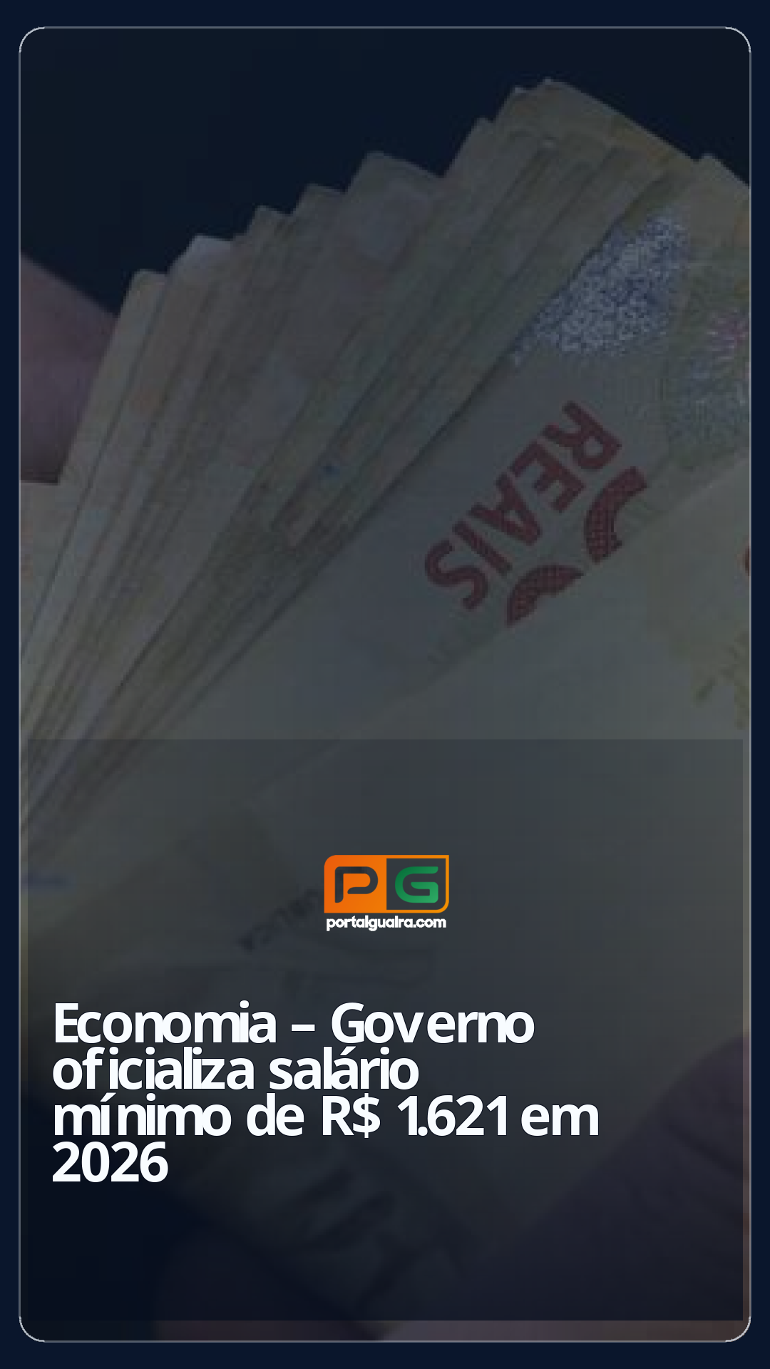O presidente Luiz Inácio Lula da Silva (PT) oficializou na quarta-feira (24) o reajuste do salário mínimo para R$ 1.621. O novo valor vale a partir de 1° de janeiro de 2026.
