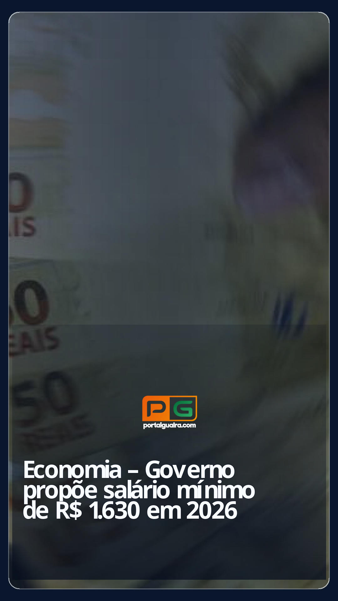 O salário mínimo em 2026 deverá ser de R$ 1.630, com aumento nominal de 7,37%. O reajuste consta do Projeto da Lei de Diretrizes Orçamentárias (PLDO) de 2026, enviado na terça-feira (15) ao Congresso Nacional.