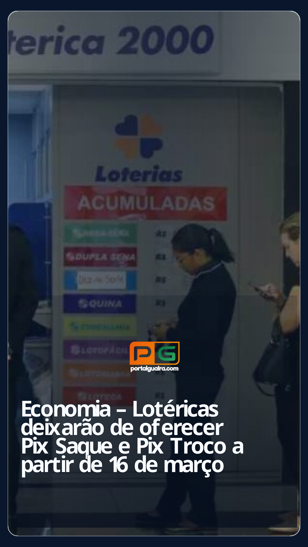 “A CAIXA informa que a suspensão dos serviços Pix Saque e Pix Troco nas Lotéricas entrará em vigor a partir de 16 de março.