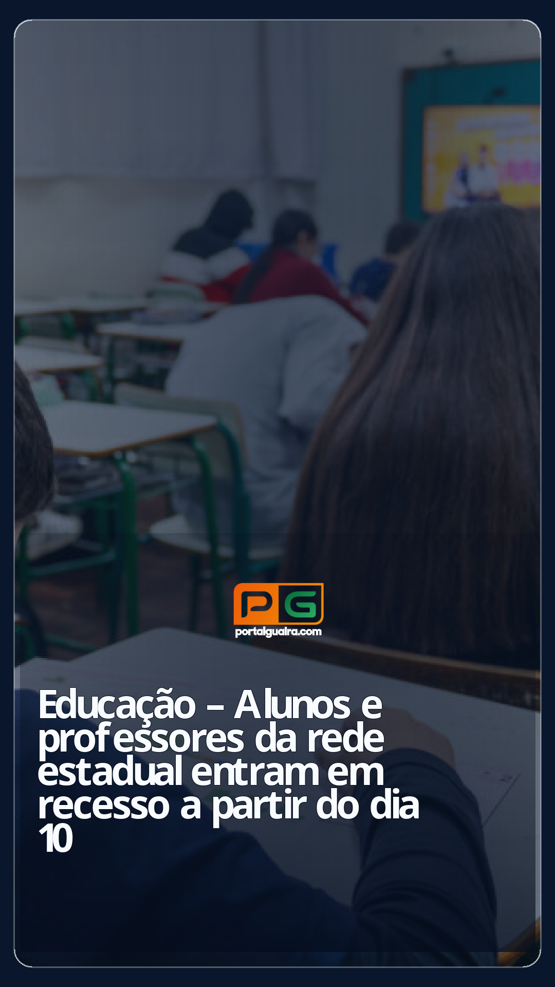 A partir do próximo dia 10 de julho cerca de 1 milhão de estudantes matriculados nas 2.088 escolas da rede estadual entram em férias. O último dia de aulas será terça-feira (09) e o retorno está programado para o dia 28 de julho. Ao todo, os alunos terão 16 dias de recesso antes de voltarem às atividades letivas do segundo semestre.