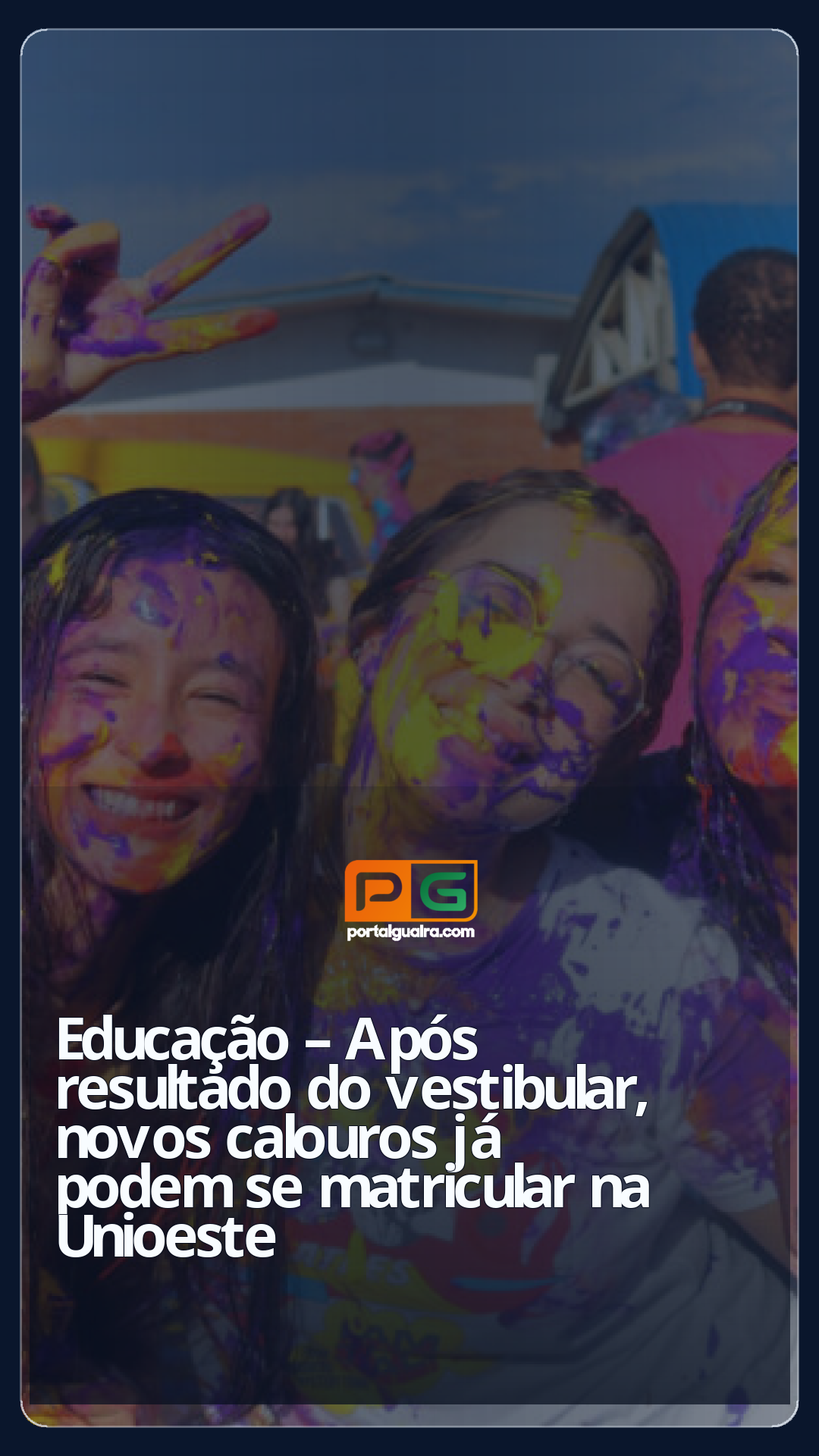 A Universidade Estadual do Oeste do Paraná (Unioeste) divulgou na sexta-feira (31) o resultado do Vestibular 2025. Os aprovados em primeira chamada já podem organizar a documentação para a pré-matrícula, que acontece de forma presencial em cada campi entre os dias 03 e 04 de fevereiro. Todas as informações sobre documentos e cronograma estão disponíveis no site www.unioeste.br.