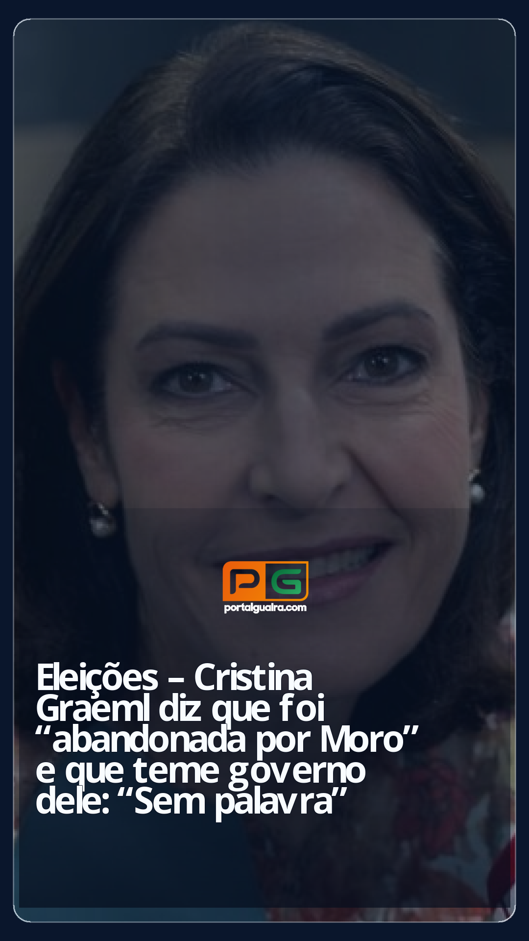 A jornalista Cristina Graeml (PSD) participou do Jornal da Manhã Paraná da Jovem Pan News, na manhã desta quinta-feira (9), e disse que foi abandonada pelo senador Sergio Moro (PL) no União Brasil e que teme um governo dele no Palácio Iguaçu.