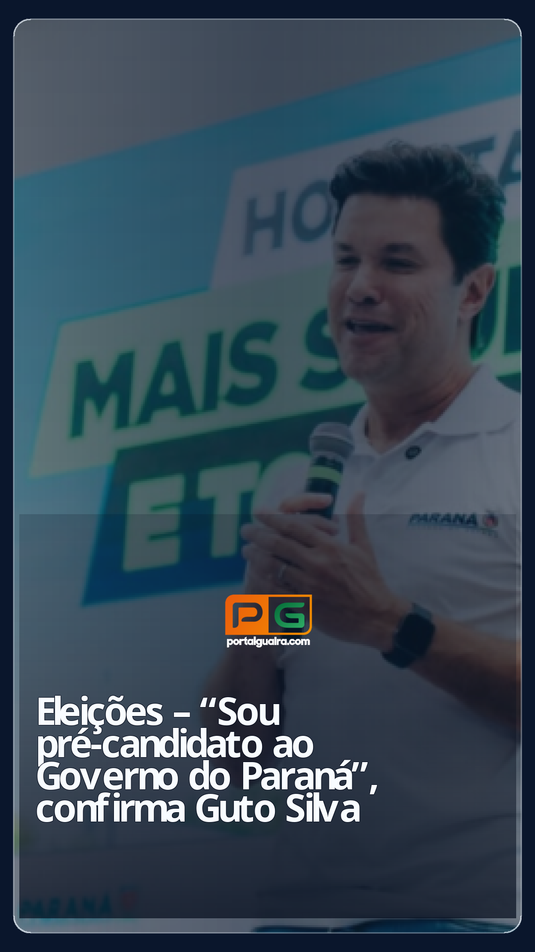 O secretário das Cidades do Paraná, Guto Silva, confirmou sua pré-candidatura ao Governo do Estado em 2026. A declaração foi dada na quinta-feira (15), durante vistoria as obras da Ponte de Guaratuba, no litoral paranaense.