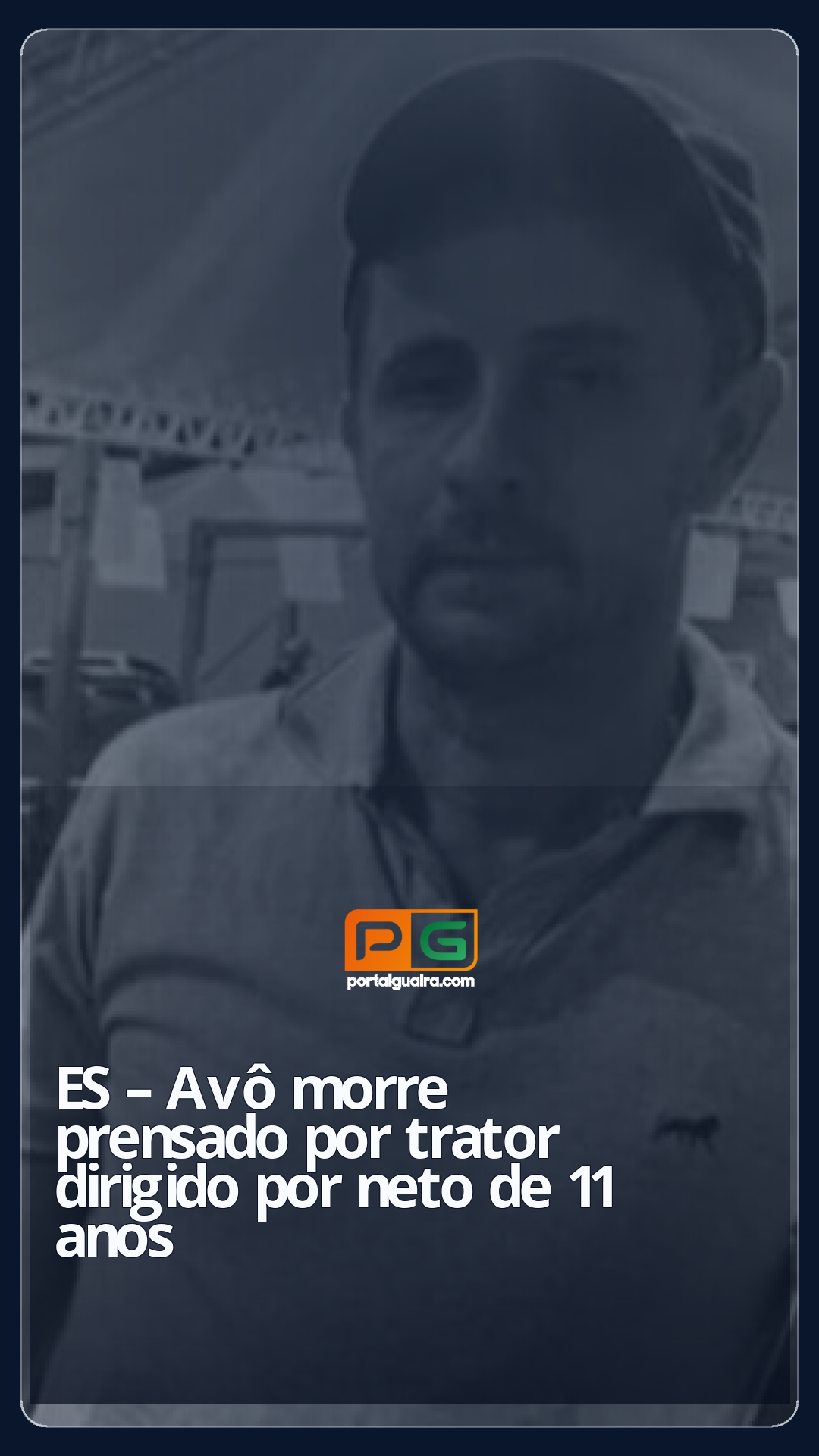Um homem de 49 anos morreu na tarde de sexta-feira (6), em Rio Novo do Sul, no Sul do Espírito Santo, ao ser prensado entre um trator e um caminhão, dentro da própria fazenda. Segundo a polícia, o neto de 11 anos de Manoel Joaquim de Oliveira é quem dirigia o trator, o menino estava na direção, auxiliando em uma manobra para desatolar o outro veículo.