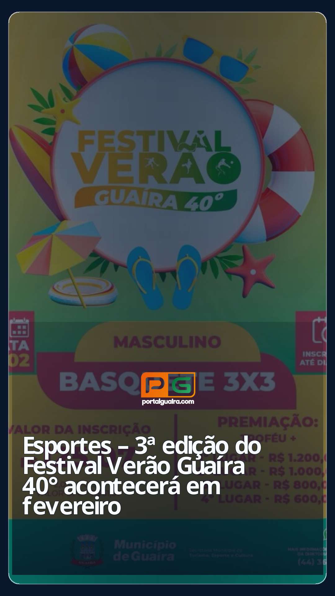 O Município de Guaíra, por meio da Secretaria de Turismo, Esporte e Cultura, realizará a 3ª edição do Festival Verão Guaíra 40° nos dias 15, 16, 22 e 23 de fevereiro, no Centro Náutico Marinas. O evento, que busca promover o esporte, o lazer e o turismo local, consolidou-se como uma das principais ações esportivas da região.