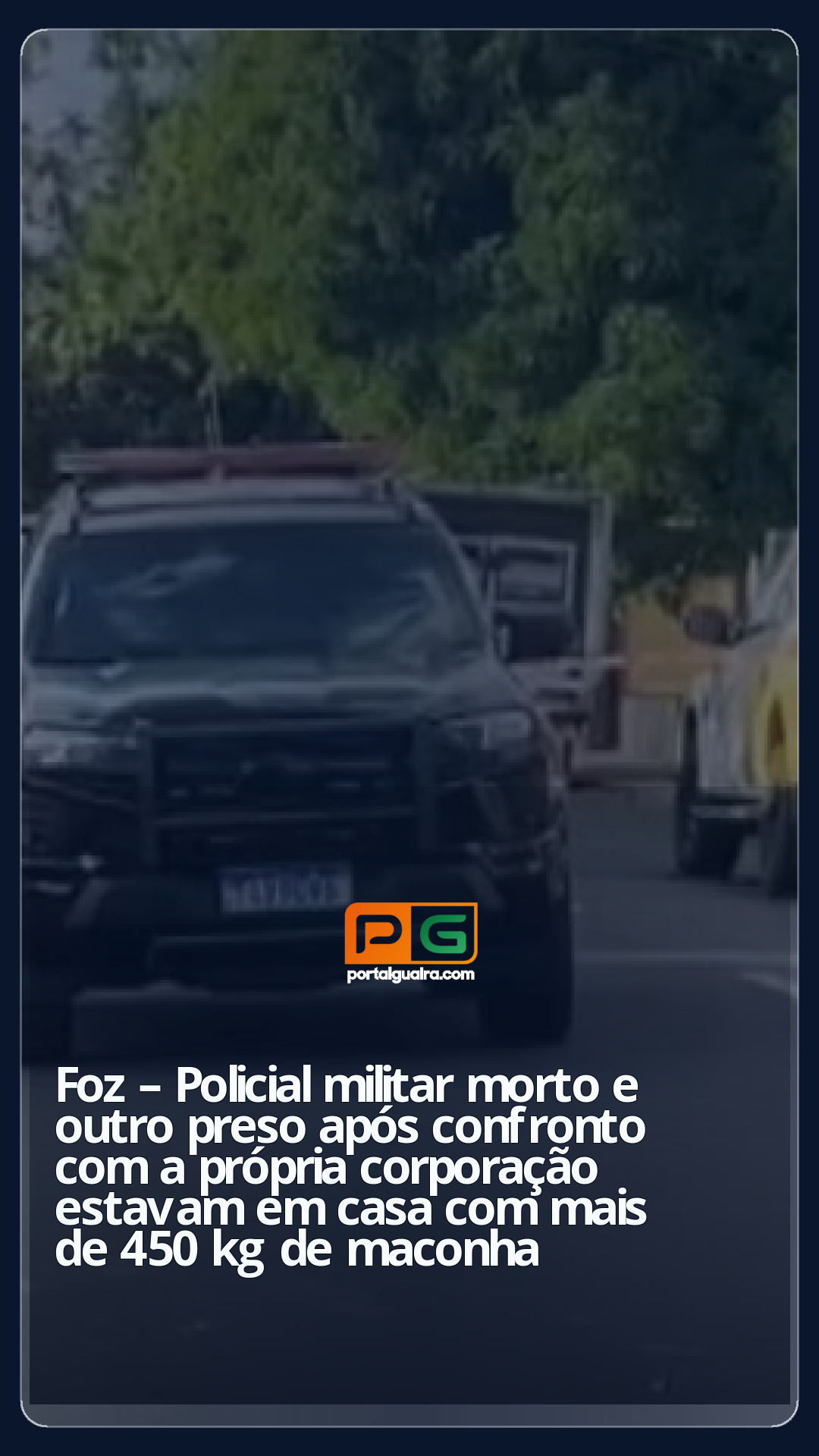 O policial militar morto e outro preso após confronto com a própria corporação estavam em uma casa onde foram encontrados mais 450 kg de maconha, segundo a Polícia Militar do Paraná (PM-PR). O caso foi registrado na quinta-feira (27) em Foz do Iguaçu.