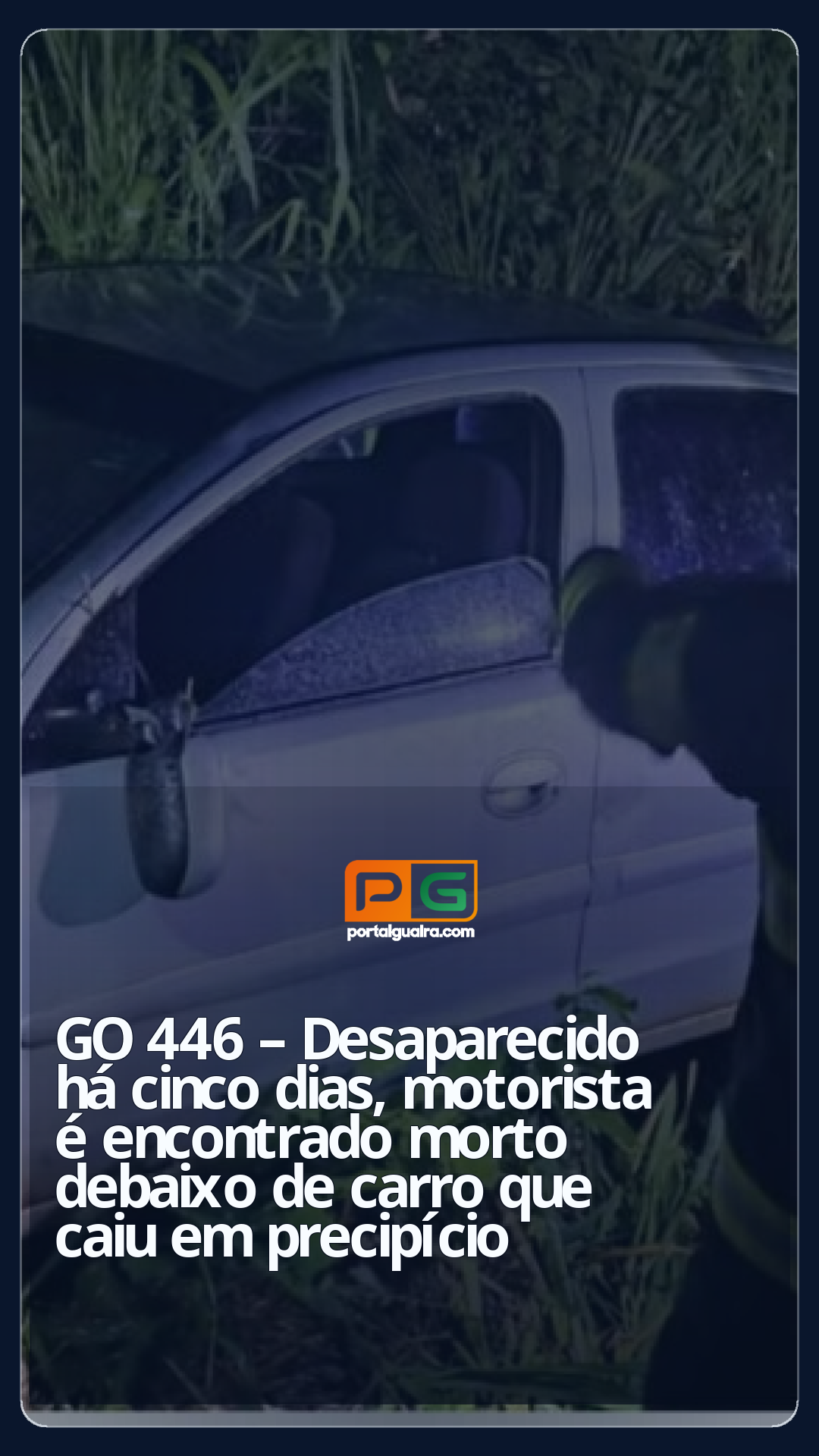 O corpo de um motorista que estava desaparecido há cinco dias foi encontrado debaixo de seu carro, que caiu de um precipício na GO-446 próximo ao povoado de Trombas, no município de Posse, no nordeste do estado. Segundo o Corpo de Bombeiros, a vítima foi ejetada do veículo durante a queda do precipício, que tem cerca de 100 metros de altura, após a vítima perder o controle da direção e sair da pista.