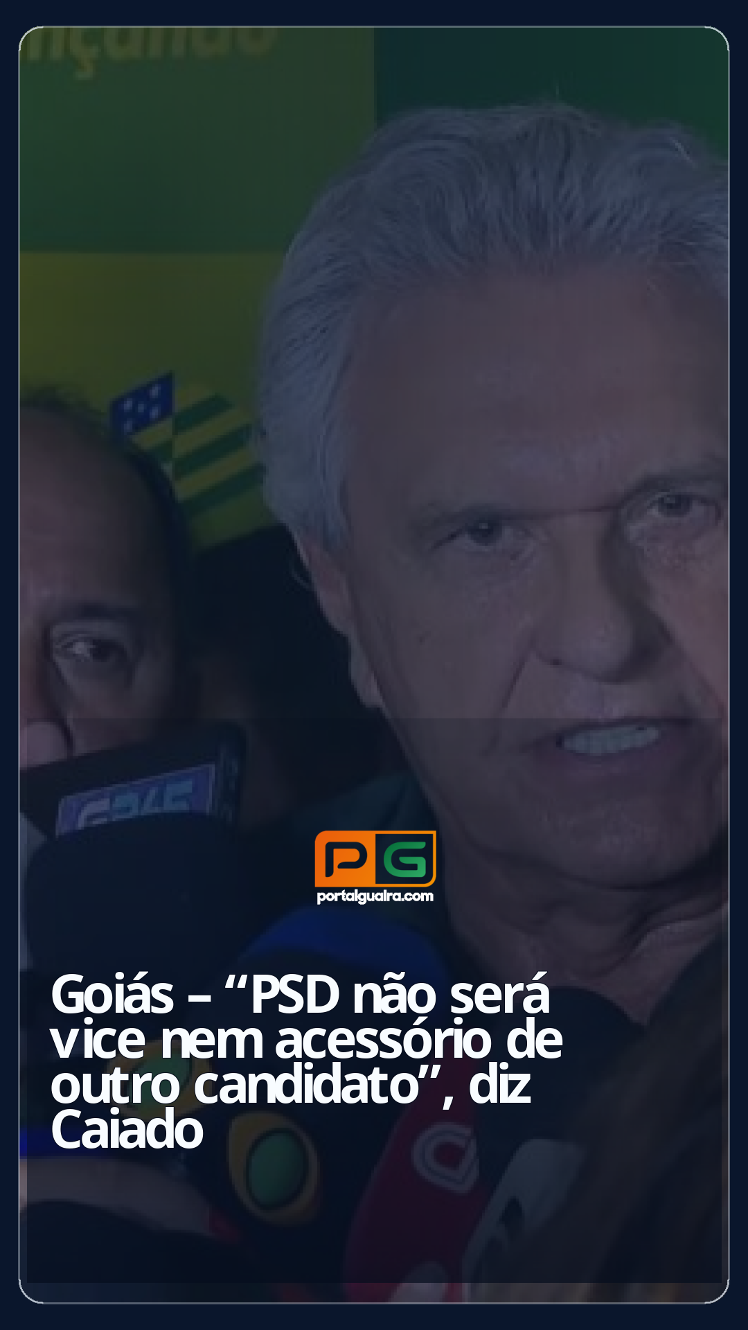 “O PSD vai lançar candidato à Presidência da República. Vai lançar. Não existe dúvida alguma. O PSD não será vice nem acessório de nenhum outro candidato. O PSD lançará candidato para disputar a presidência da república. Nem vice nem nada. Presidente. Não tem hipótese de o PSD não lançar candidato à presidente da República”, afirmou Caiado ao chegar no local do evento de filiação ao PSD, na cidade de Jaraguá, no interior de Goiás.