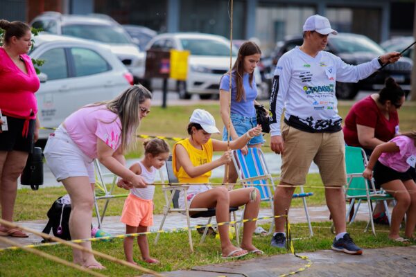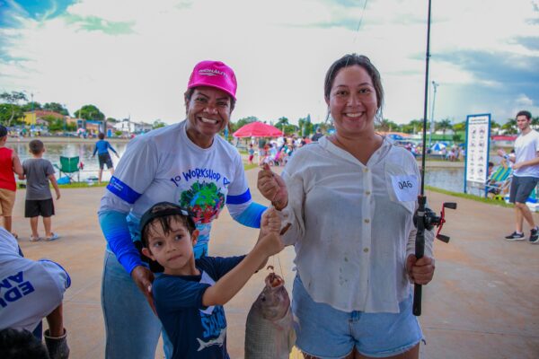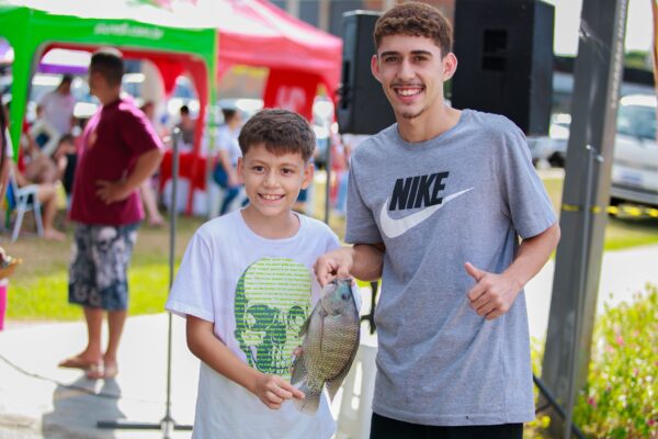Durante a tarde, crianças e adultos aproveitaram a pescaria, com diversas capturas. A chuva que caiu em determinado momento não interrompeu a atividade, e os participantes seguiram engajados na competição e na confraternização.