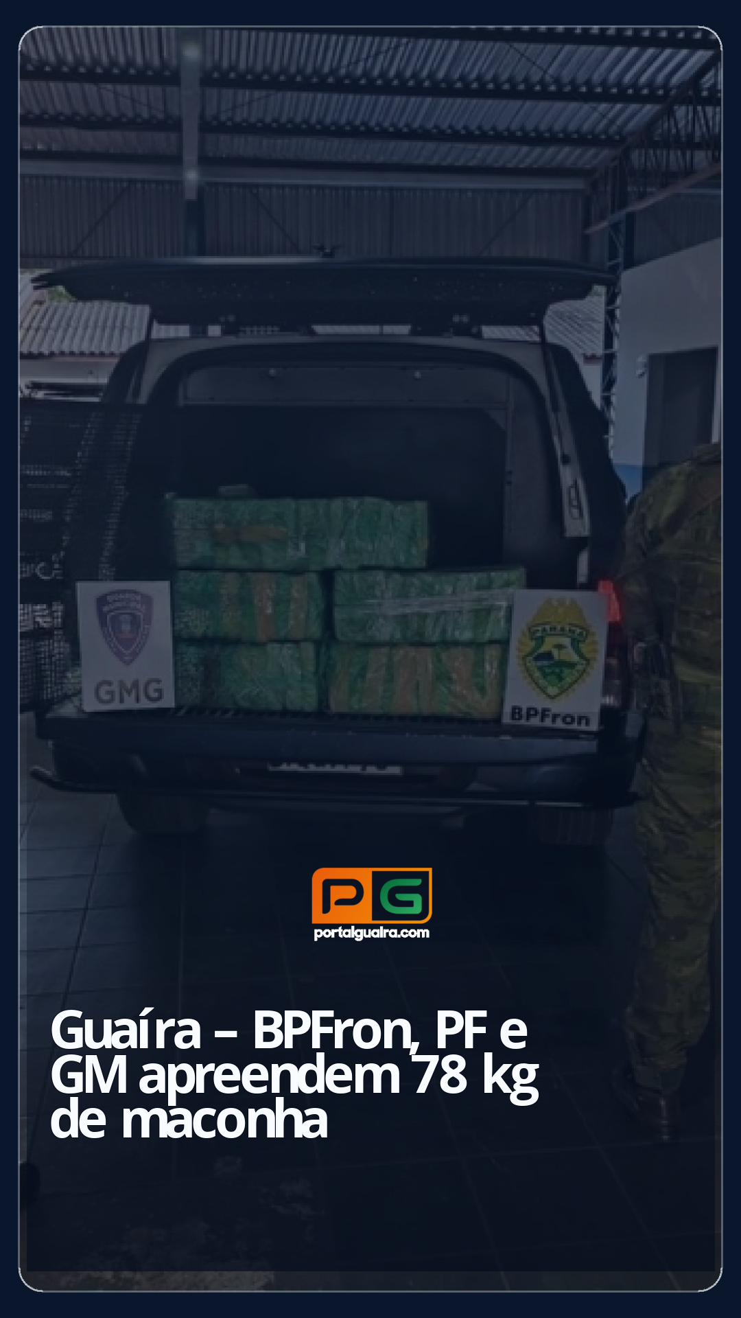 Nesta sexta-feira (06), a Polícia Militar do Paraná por intermédio do Batalhão de Polícia de Fronteira (BPFRON), no âmbito da Operação Protetor de Fronteiras e Divisas, em ação integrada com a Polícia Federal (NEPOM) e com a Guarda Municipal (GMC) de Guaíra, após diligências realizadas no bairro Santa Clara, localizou 78 kg de substância análoga à maconha em uma área de mata.