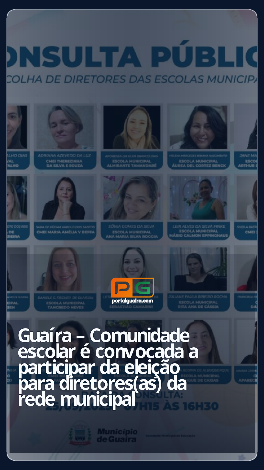 O Município de Guaíra, por meio da Secretaria Municipal de Educação, convoca toda a comunidade escolar a participar de um momento decisivo para a educação: a consulta pública para escolha de diretoras e diretores das escolas da rede municipal, que será realizado no dia 25 de setembro de 2025.