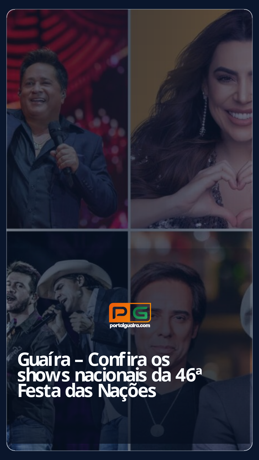 A 46ª Festa das Nações de Guaíra, tradicional evento filantrópico do Paraná, ocorrerá de 30 de abril a 4 de maio de 2025, no Centro Náutico Marinas. Durante esses dias, o público poderá desfrutar de uma programação diversificada, incluindo shows de artistas nacionais renomados.