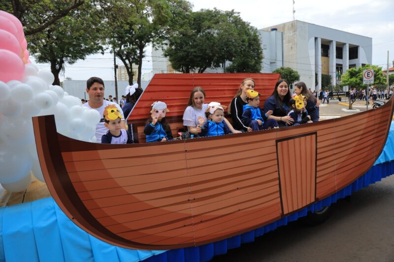 Durante o desfile, os estudantes apresentaram diferentes alas temáticas que ilustraram desde histórias bíblicas, como a Criação, a Arca de Noé e os discípulos de Jesus, até projetos atuais desenvolvidos pela escola, como o incentivo à leitura, a música e os esportes.