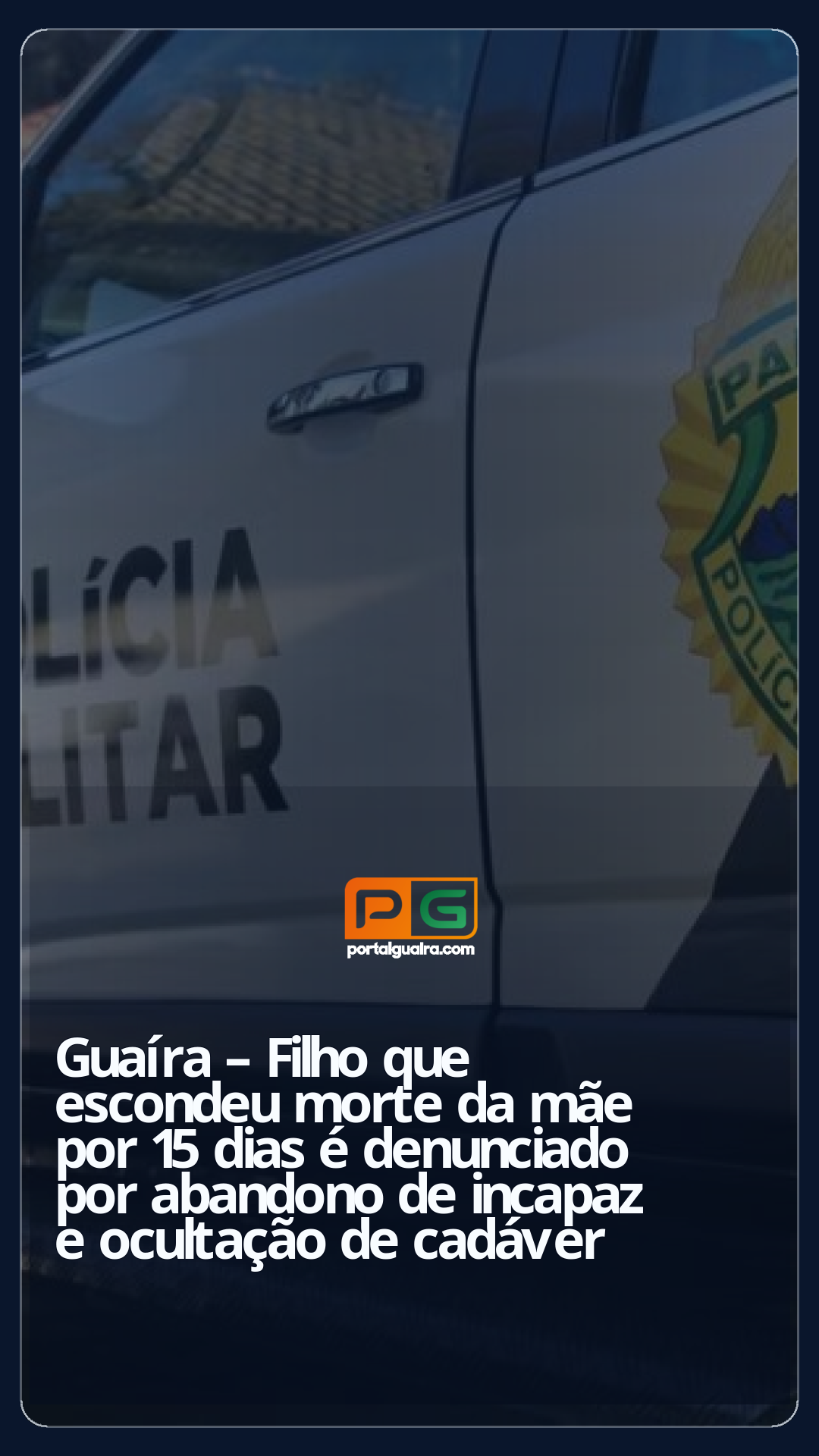 Apesar disso, a 2ª Promotoria de Justiça de Guaíra entendeu que a conduta do filho configura abandono de incapaz e ocultação de cadáver. A denúncia foi apresentada em 10 de fevereiro e aceita pela Justiça três dias depois.