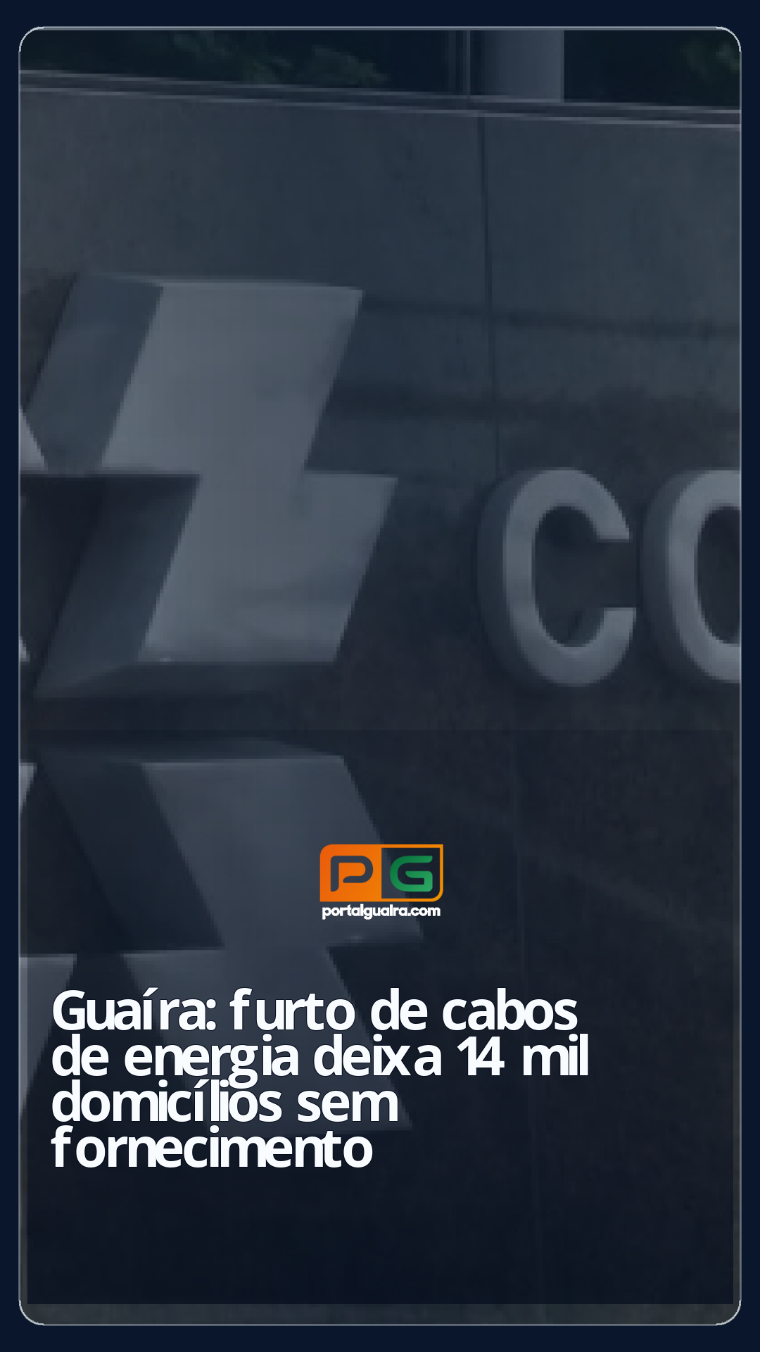 Na madrugada de sábado (02) para domingo (03), um furto de cabos de energia causou a interrupção do fornecimento elétrico para cerca de 14 mil domicílios aqui em Guaíra.