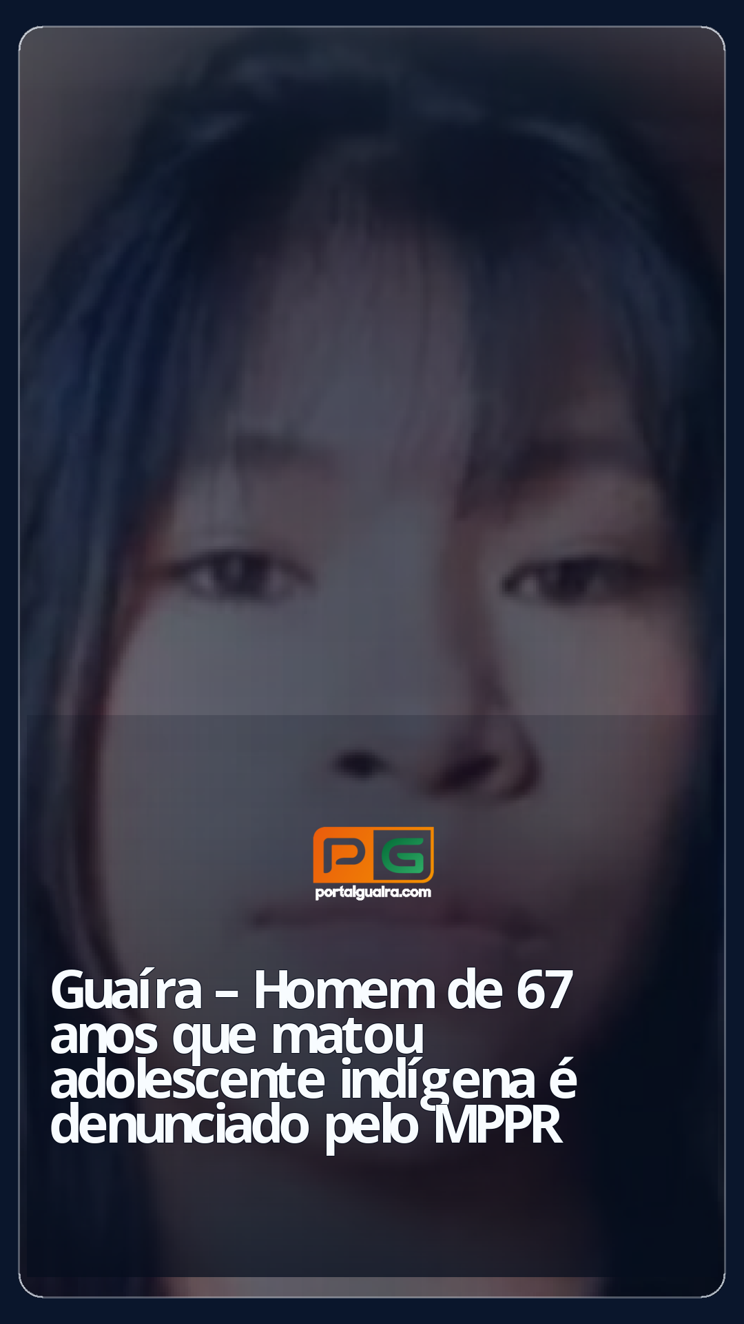 O Ministério Público do Paraná denunciou por feminicídio um homem de 67 anos investigado pela morte da adolescente indígena, Jessicléia Martins, no município de Guaíra, no dia 20 de fevereiro deste ano. Ele é acusado de ter matado a facadas a vítima, uma jovem de 17 anos, por ela não aceitar manter um relacionamento com ele. O crime ocorreu na Aldeia Tekoha Yhovy, na Vila Eletrosul, em Guaíra. A denúncia foi recebida na quarta-feira (26) e tramita na Vara Criminal de Guaíra.,