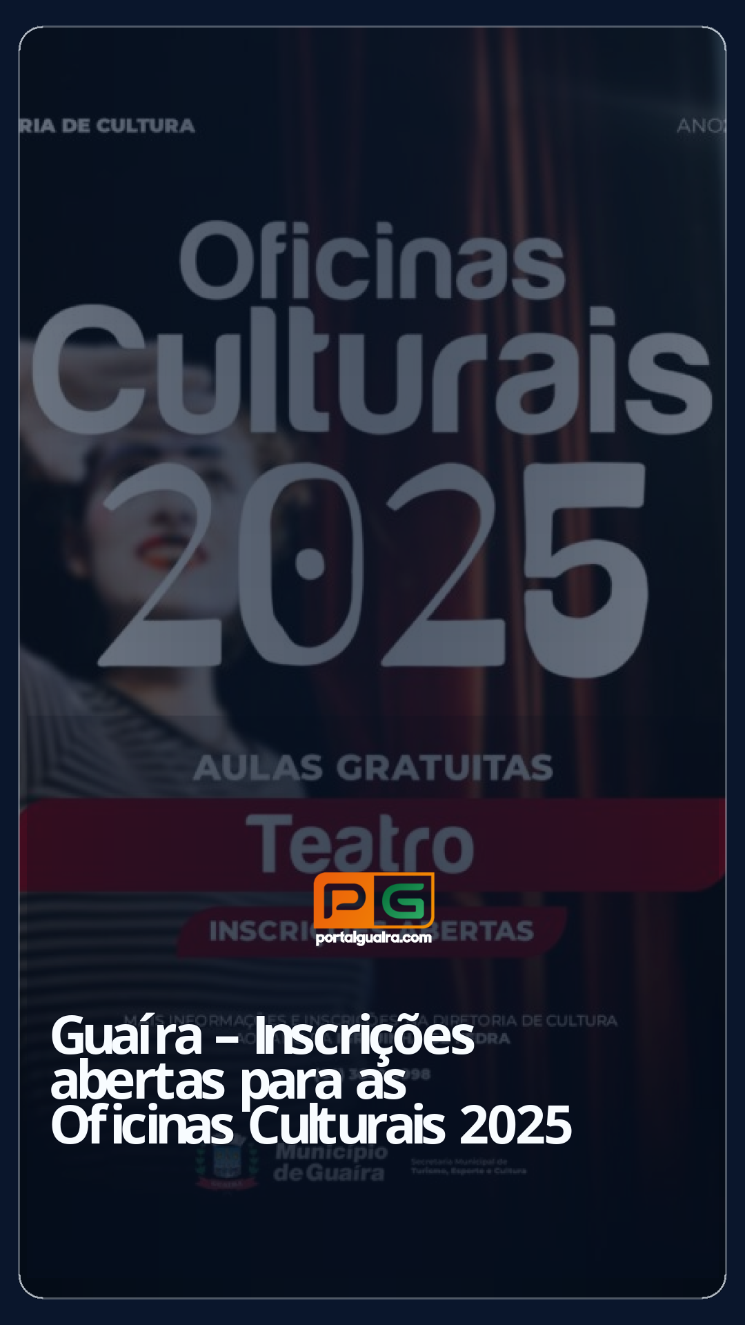 O Município de Guaíra, por meio da Diretoria de Cultura da Secretaria Municipal de Turismo, Esporte e Cultura, está com inscrições abertas para as Oficinas Culturais 2025.