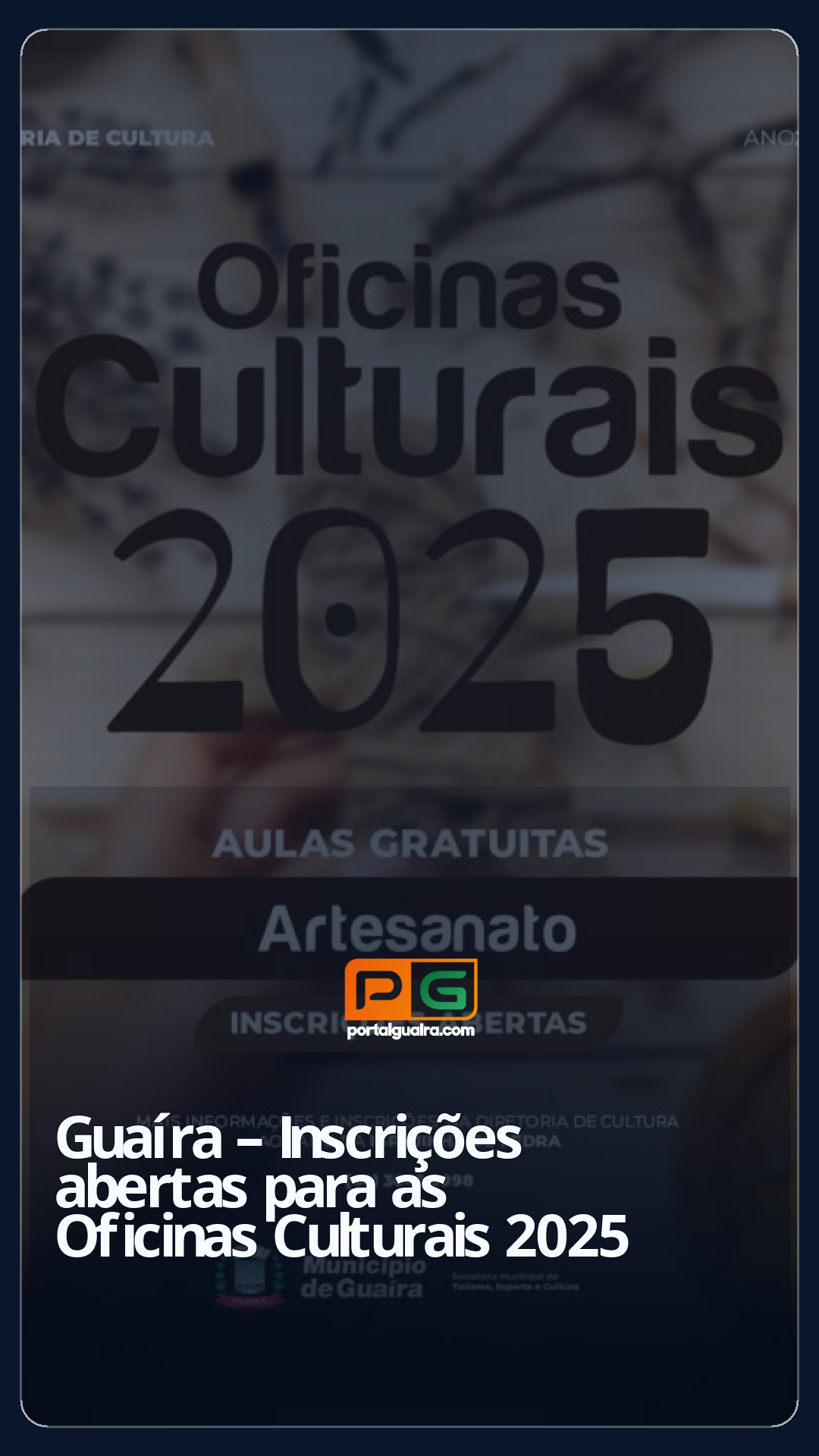 O Município de Guaíra, por meio da Diretoria de Cultura da Secretaria Municipal de Turismo, Esporte e Cultura, está com inscrições abertas para as Oficinas Culturais 2025.