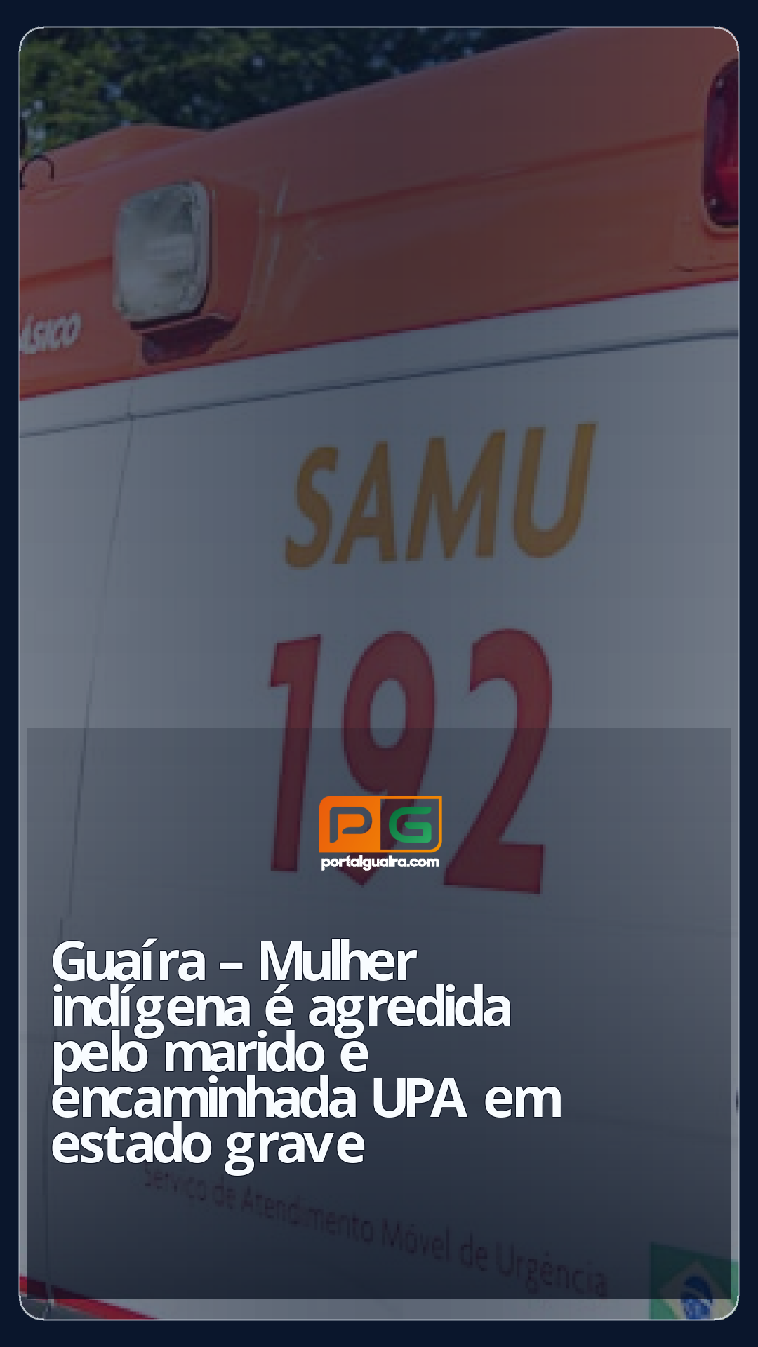 No local, foi constatado que uma mulher indígena havia sido agredida pelo marido. A vítima apresentava dois cortes profundos na cabeça e intenso sangramento, sendo prontamente atendida pela equipe do SAMU e encaminhada à Unidade de Pronto Atendimento (UPA).