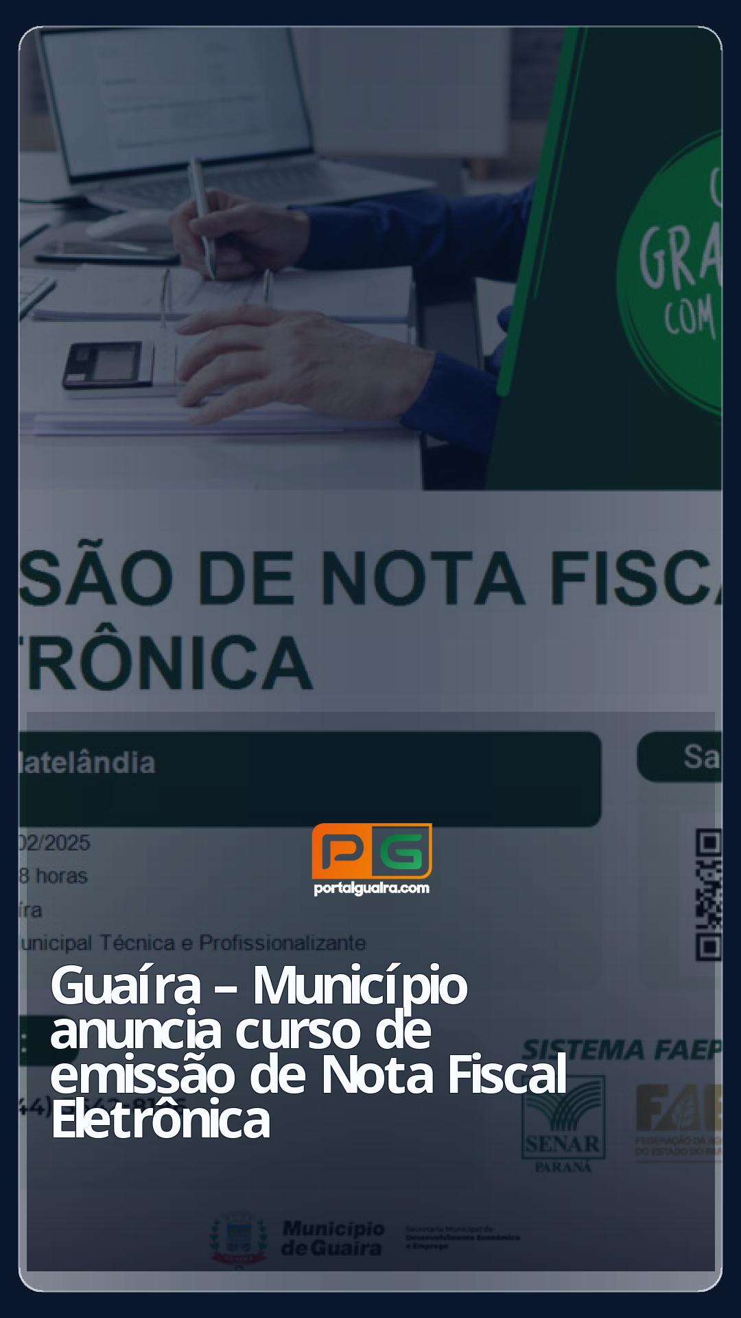 O Município de Guaíra, por intermédio da Secretaria de Desenvolvimento Econômico e Emprego, da Secretária de Fazenda, Sistema FAEP, Senar e Sindicato Rural Patronal, anuncia o curso de Emissão de Nota Fiscal Eletrônica.