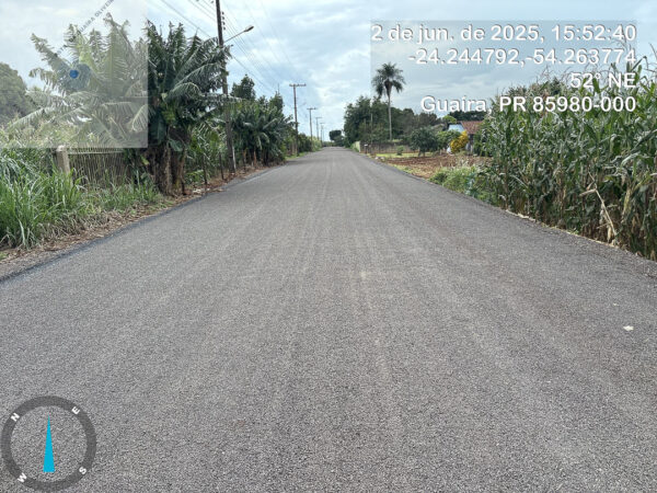 A pavimentação teve 780 metros de extensão e cobriu uma área total de 5.460 metros quadrados. O investimento, com recursos próprios do Município, totalizou R$ 350.000,00.