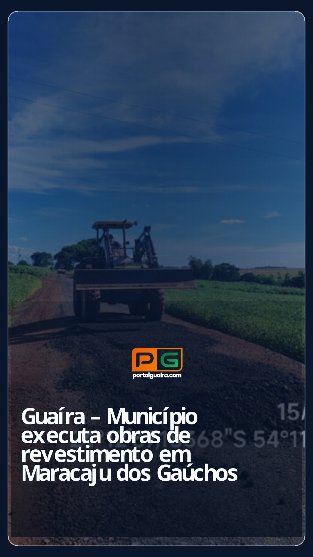 O Município de Guaíra, por intermédio da Diretoria de Estradas de Rodagem, vinculada à Secretaria Municipal de Agropecuária, Infraestrutura e Meio Ambiente (SEMAIM), realizou entre os dias 13 e 16 de janeiro de 2026 obras de revestimento com material fresado na Comunidade de Maracaju dos Gaúchos.