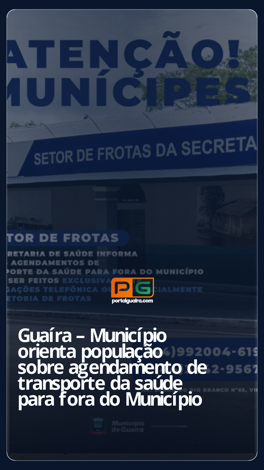 O Município de Guaíra, por meio da Diretoria de Frotas da Secretaria Municipal de Saúde (SMS), orienta os munícipes que necessitam de transporte para atendimentos médicos realizados fora do Município.
