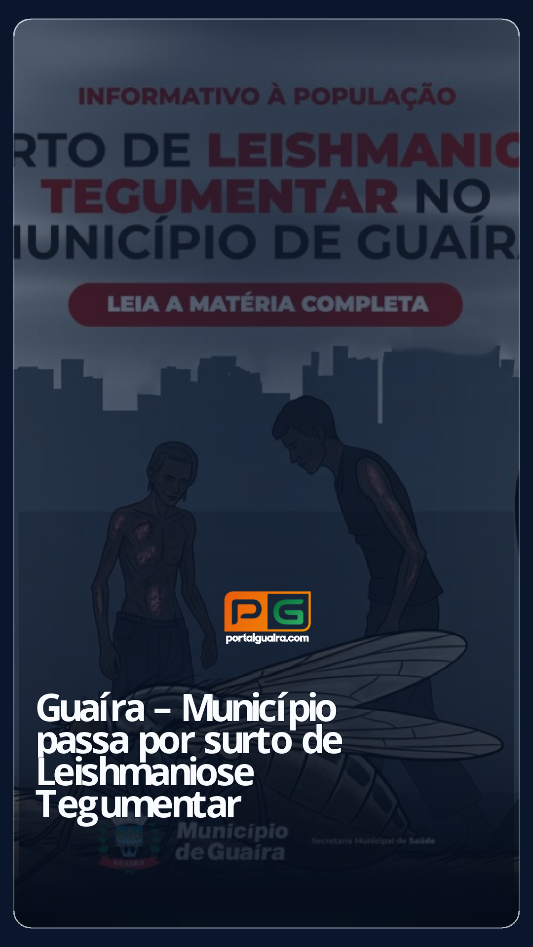 O Município de Guaíra por intermédio da SMS – Secretaria Municipal de Saúde, por meio da Vigilância Epidemiológica, informa à população que um surto de Leishmaniose Tegumentar foi identificado no Município de Guaíra. A doença é causada por um protozoário transmitido pela picada do mosquito-palha (flebótomo), conhecido popularmente como “birigui” ou “mosquito tatuquira”.