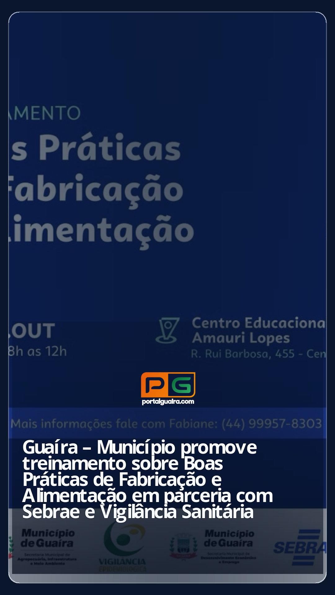 O Município de Guaíra, por meio da Diretoria de Indústria e Comércio da Secretaria de Desenvolvimento Econômico e Emprego (SEDE), em parceria com a Vigilância Sanitária e o Sebrae, promoverá no dia 23 de outubro de 2025 o Treinamento de Boas Práticas de Fabricação e Alimentação. A ação tem como foco a capacitação de profissionais e empreendedores que atuam no setor alimentício, fortalecendo a qualidade e a segurança dos serviços prestados à população.