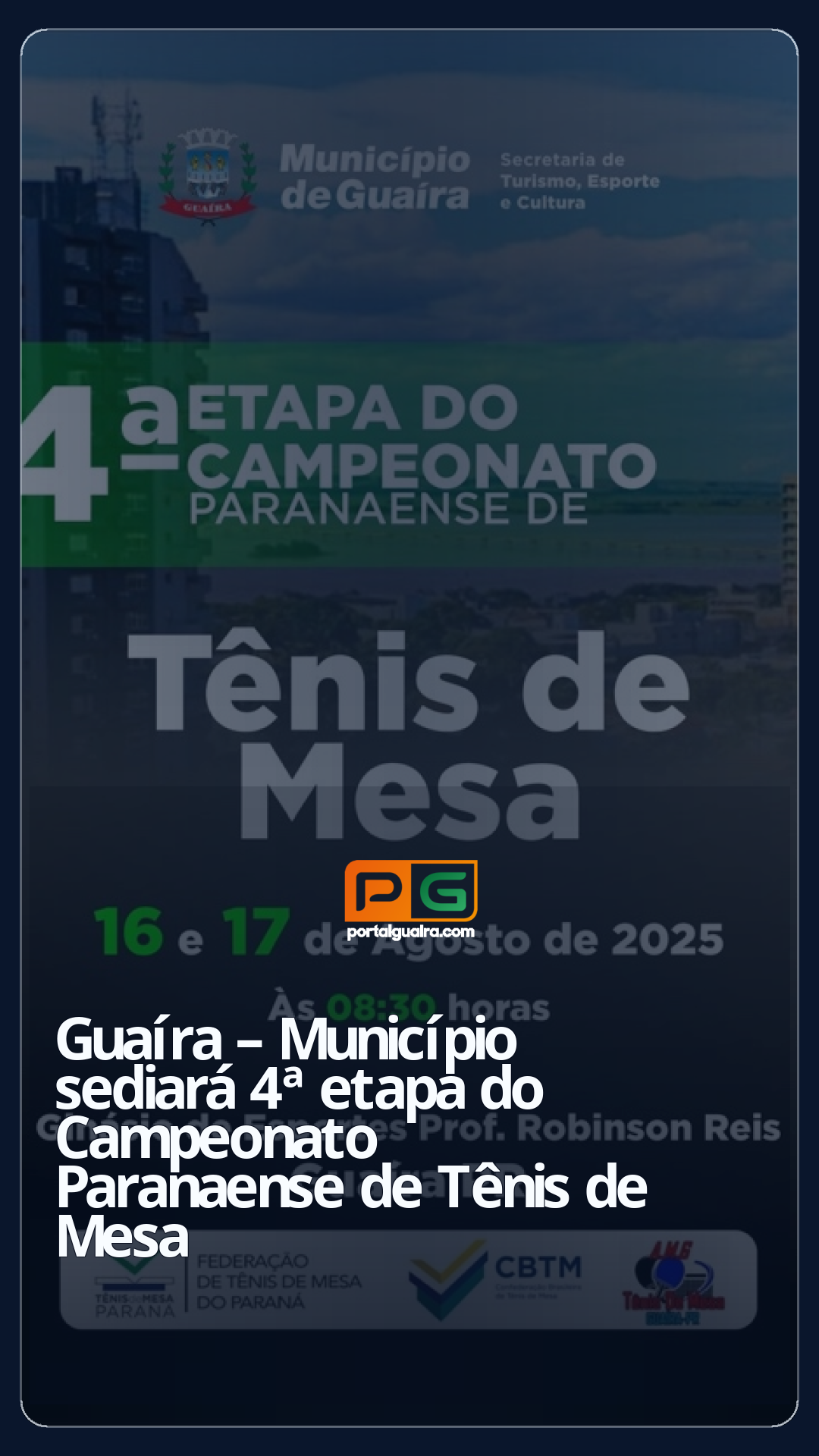 O município de Guaíra, será palco da 4ª etapa do Campeonato Paranaense de Tênis de Mesa nos dias 16 e 17 de agosto de 2025.