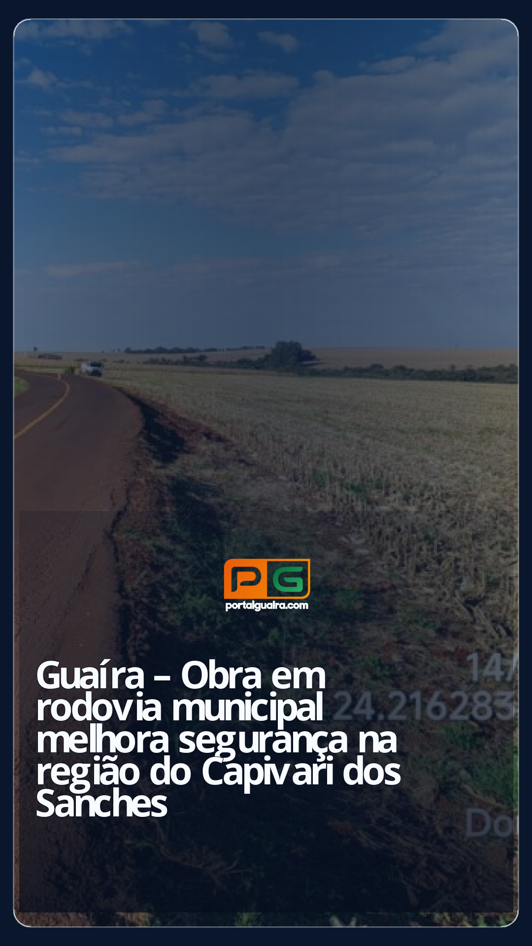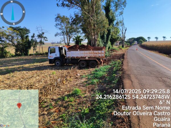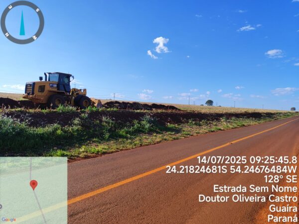 O Município de Guaíra, por meio da Diretoria de Estradas de Rodagem da SEMAIM – Secretaria Municipal de Agropecuária, Infraestrutura e Meio Ambiente , executa uma obra de melhoria na curva próxima ao Capivari dos Sanches, na rodovia que liga a sede do Município ao Distrito de Dr. Oliveira Castro.