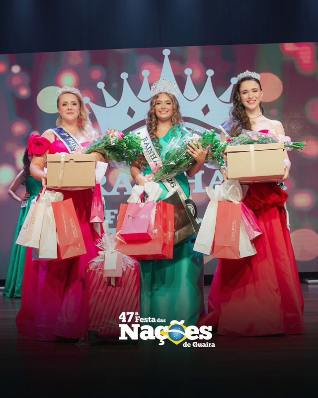 Ao final da disputa, foram eleitas as representantes da nova corte da festa. Paola Faccin conquistou o título de Rainha, enquanto Letícia Frez foi escolhida como 1ª Princesa e Natália Alice como 2ª Princesa. As eleitas agora assumem o compromisso de representar Guaíra com entusiasmo, dedicação e orgulho durante toda a programação da festividade.