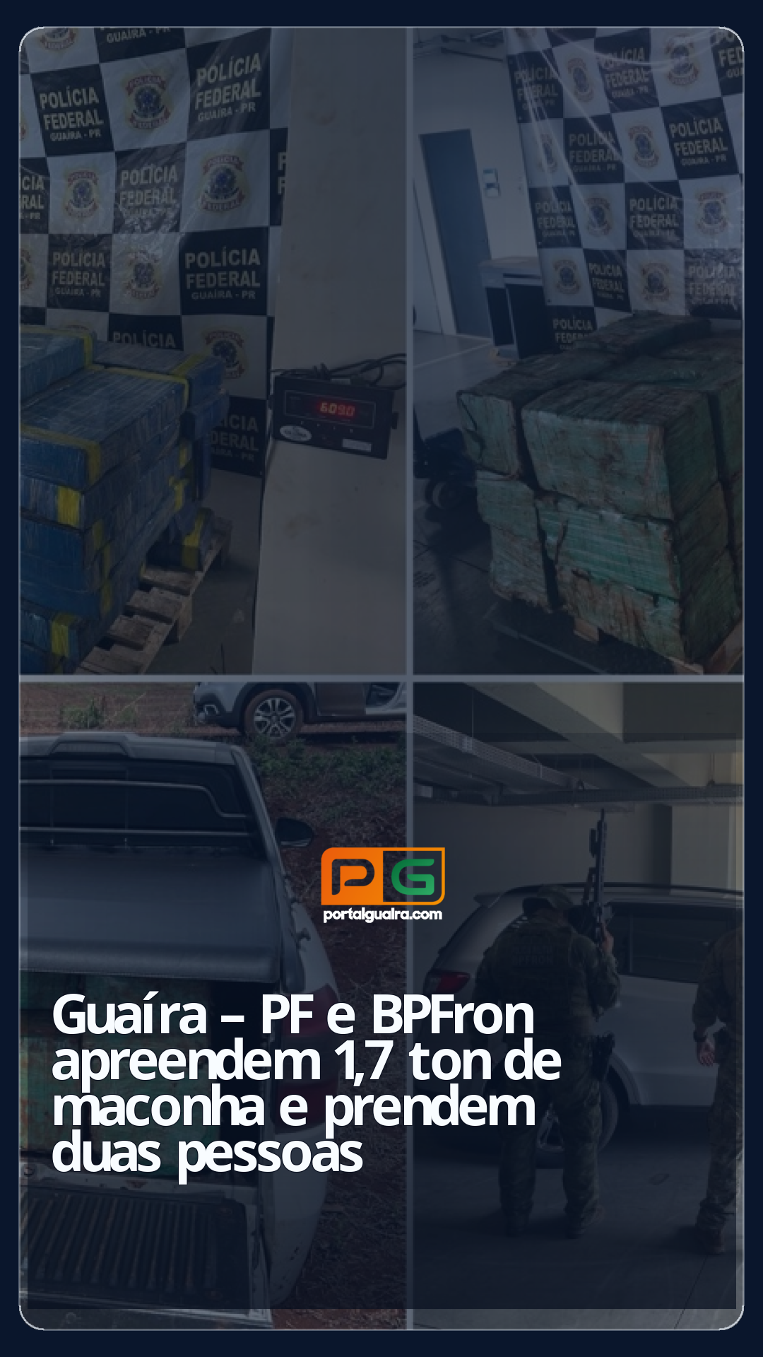 Na quarta-feira (29), a Polícia Federal e o Batalhão de Polícia de Fronteira (BPFRON/PMPR) realizaram duas apreensões significativas de drogas na cidade de Guaíra/PR, totalizando 1.771 kg de maconha.