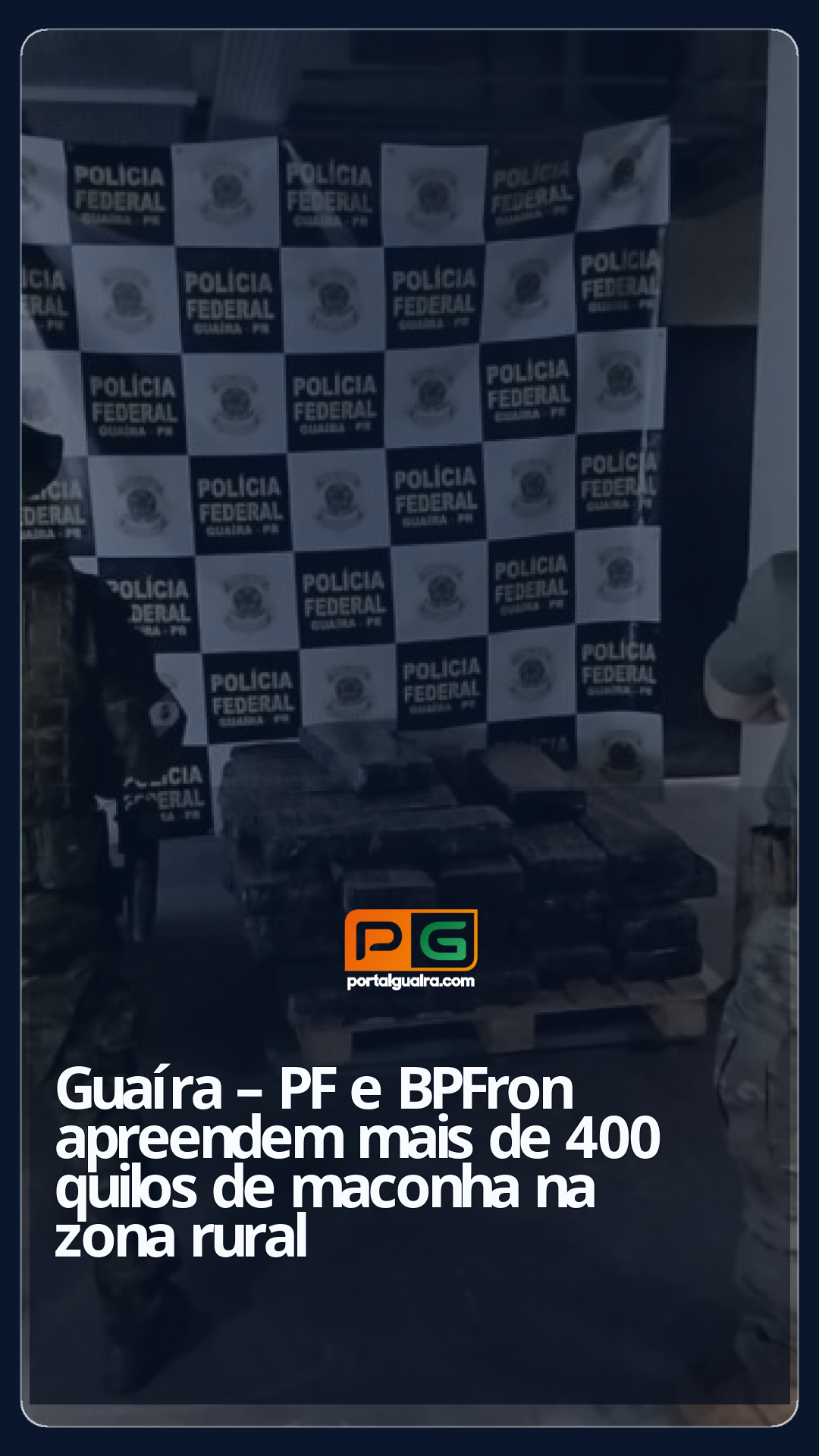 Na noite de quarta-feira (20), ação integrada entre o Nepom da Polícia Federal e a Polícia Militar do Paraná, por meio do Batalhão de Polícia de Fronteira (BPFron), logrou êxito em apreender mais de 400 quilos de maconha na zona rural de Guaíra.