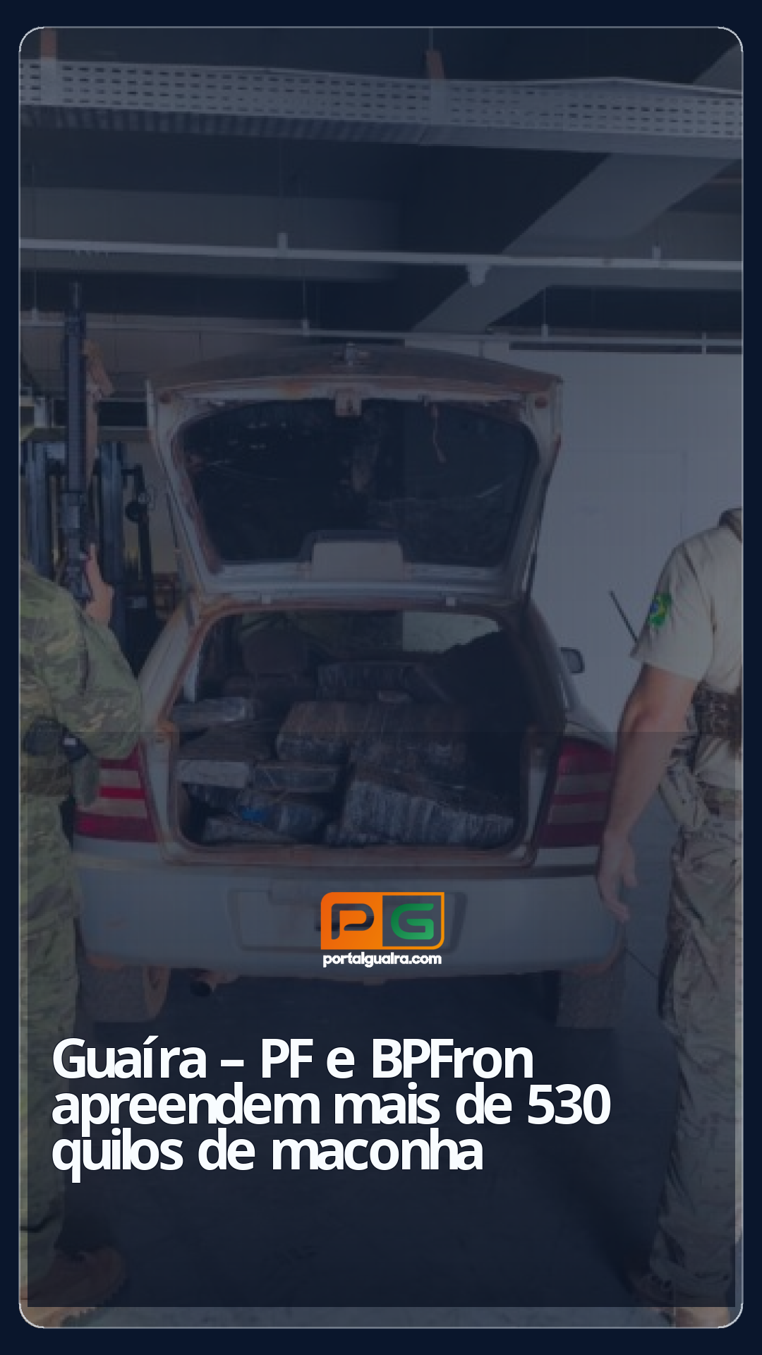O entorpecente e o automóvel foram encaminhados à Delegacia da Polícia Federal em Guaíra para os procedimentos legais cabíveis.