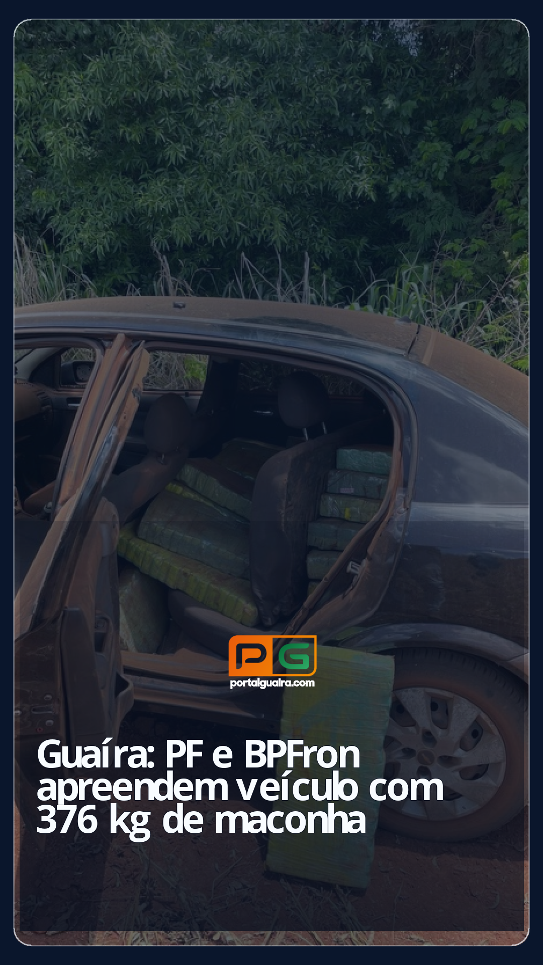 Nesta sexta-feira (31), uma ação integrada entre a Polícia Federal e Policiais Militares do BPFron/PMPR resultou na apreensão de um veículo carregado com 376 kg de maconha em Guaíra, no Paraná.